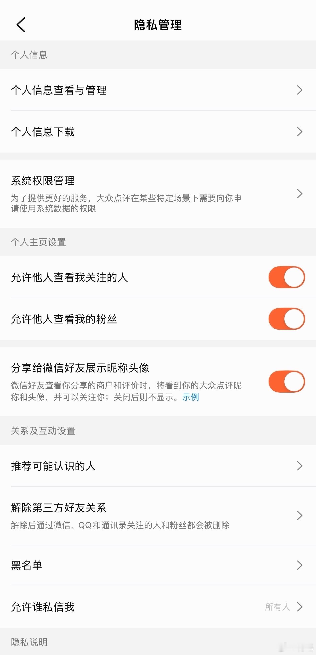 大众点评App - 我的 - 右上角设置 - 隐私管理 - 系统权限管理 - 分析相册内容权限
