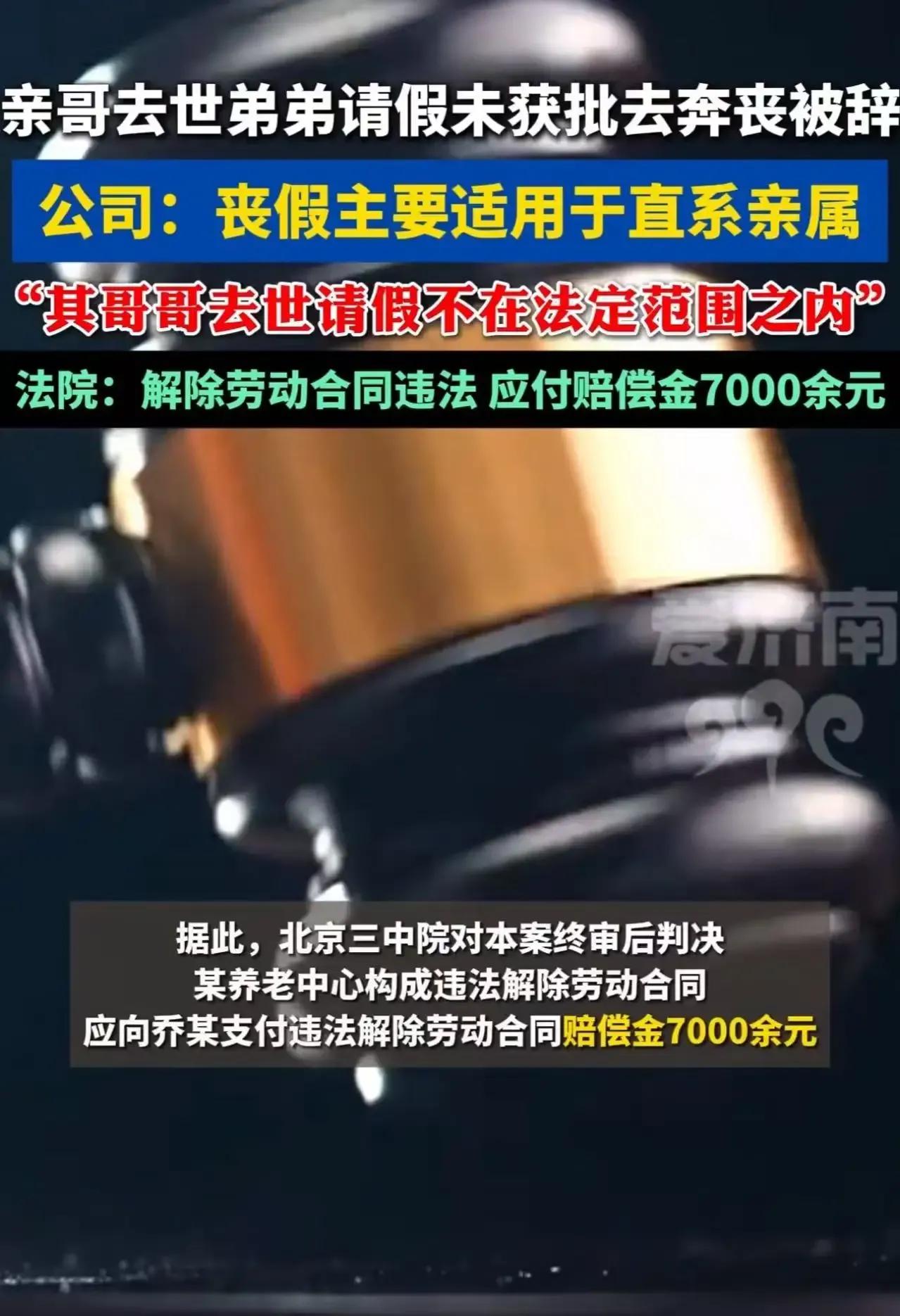 “我亲哥去世,我去奔丧竟然被开除了,这公司还有没有人性?”近日,这样一则消息引发了网友们的热议,究竟是怎么回事呢? 原来,是一位弟弟的哥哥不幸去世,他向公司请假准备去奔丧,却没想到公司并未批准他的请假申请。更让他无法接受的是,在他坚持前往奔丧后,竟然被公司以未经同意请假为由辞退了。公司方面表示,他们的丧假制度主要适用于直系亲属,而这位弟弟的情况并不符合规定。这一解释引发了网友们的广泛争议,许多人认为,虽然公司制度需要遵守,但在面对如此重大的家庭变故时,公司也应该展现出更多的人性关怀。毕竟,谁都有可能遇到类似的情况,如果都按照冷冰冰的制度来处理,未免太过不近人情。也有网友表示,公司制度固然重要,但更应该注重员工的情感需求,毕竟员工是公司最宝贵的财富。 这起事件确实让人深思,公司制度与人性关怀究竟该如何平衡?大家对此有何看法呢?欢迎在评论区留言讨论,一起为这位弟弟出出主意,也分享下你的观点吧!叔伯哥哥去世 哥哥过世 奔丧礼仪 请假后身亡