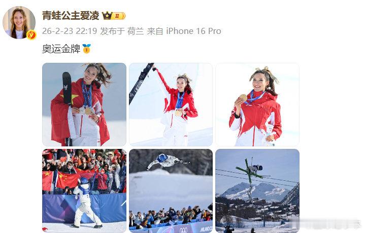 谷爱凌发博晒金牌:奥运金牌🥇