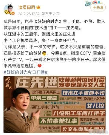 田雨内娱人缘 家人们快看!田雨新剧开播,好友们纷纷来站台,这人脉资源太牛了!田雨在演艺道路上始终保持初心,用精湛的演技塑造了许多经典角色,也赢得了大家的尊重和喜爱,期待庄先进的精彩故事!