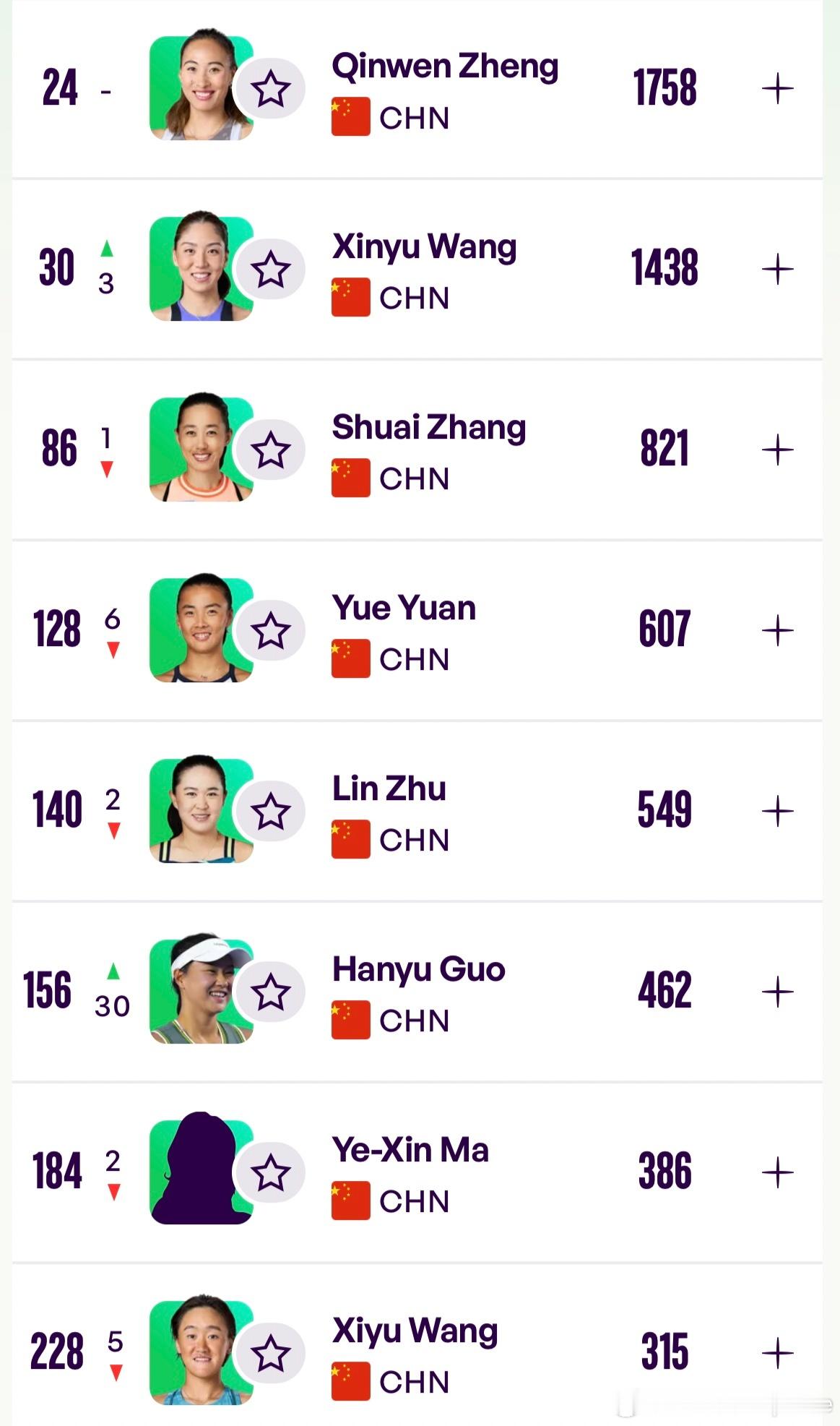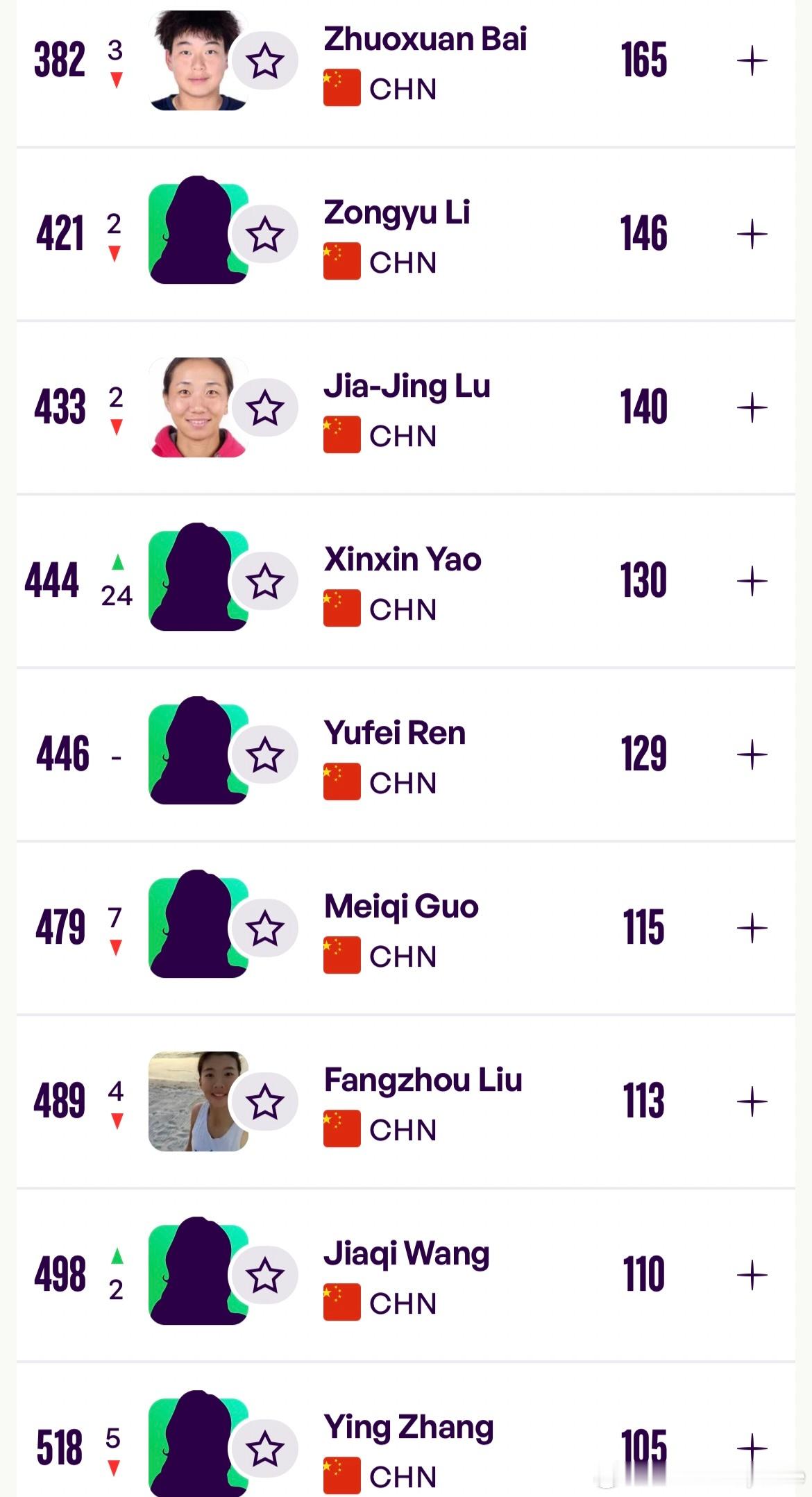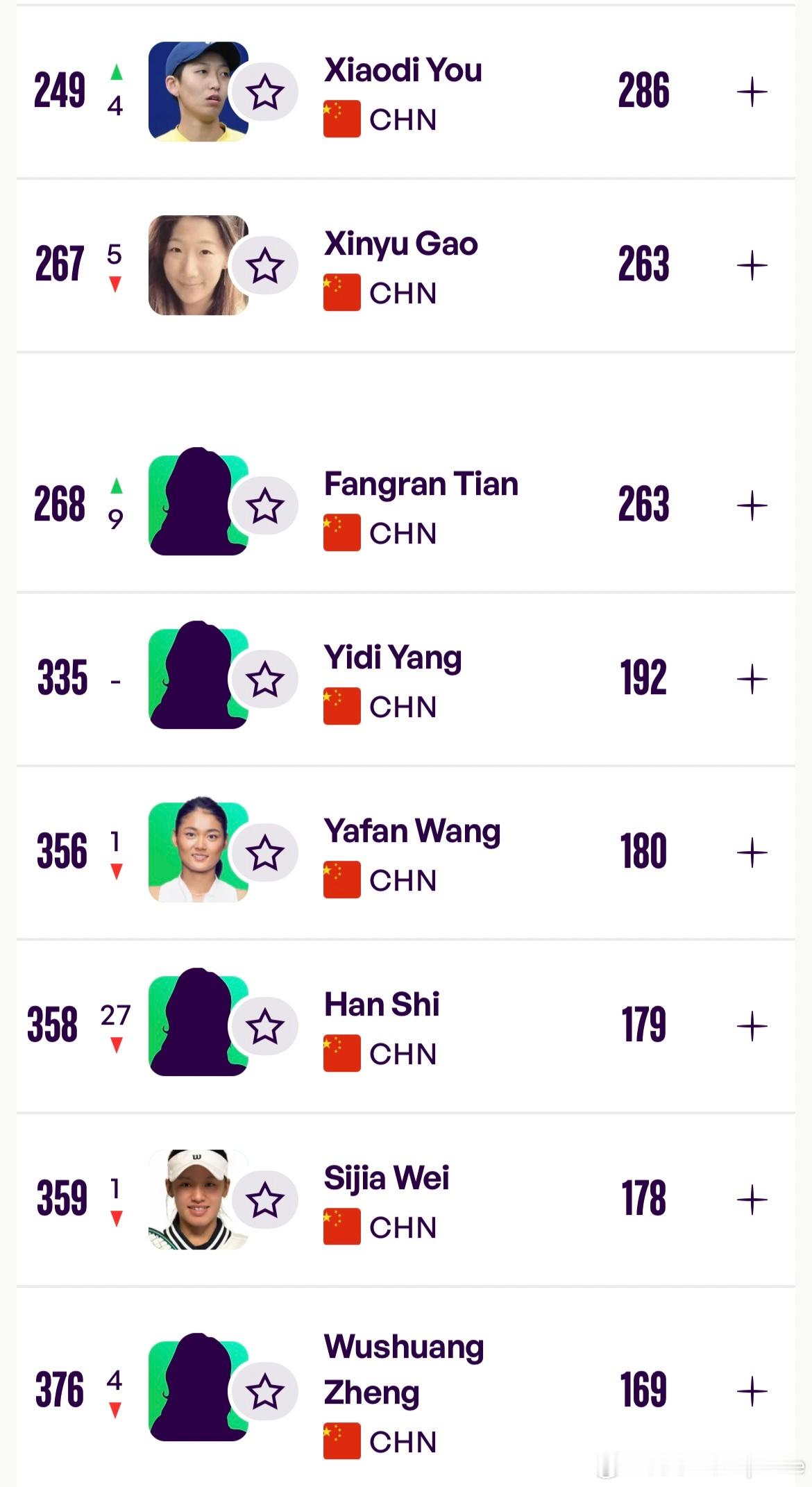 三位球员在本周刷新自己最高排名✈️🇨🇳王欣瑜No.30✈️🇨🇳郭涵煜No.156✈️🇨🇳田方然No.268