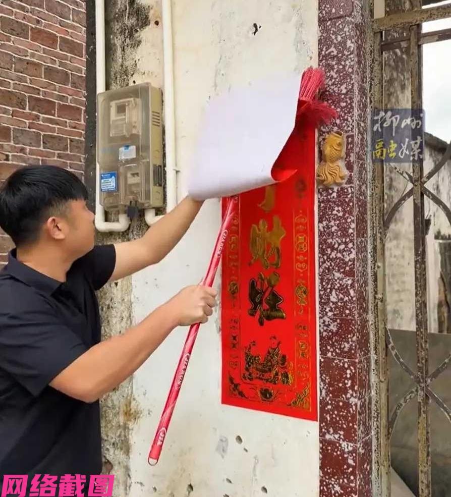 广东有小伙在家里贴春联,只是他用的方式有点特别,因为他用了家里的扫帚直接上手推贴春联。 只在众人看到小伙举动这样的方式为不妥当,小伙却不以为然,认为眼前的办法又快又好,别人还需搬梯子凳子,自己就靠一把扫帚解决眼前的问题,没有了那些耗费力气的活计。 只是广东这边的众人看到后,觉得小伙的方式不吉利,扫帚是扫晦气的东西,如今拿来应付对待贴春联,在这个吉祥的时刻,如此之作实属不应该,等于把家里的福气全部扫没了,如让家里的长辈看到定然不可饶恕,还是年轻人对待民俗的认知不足。 虽贴春联不是什么大事,但有些规矩还是要遵守,千万不要图以省事,而采取敷衍了事的办法来行为这样,不仅对自己不利,也失去了贴春联的意义,这里小伙是聪明反被聪明误,让一些老规矩失去了原味,没有了春联留给新年的价值。 贴春联是年味,是一代人一代人留下的民俗祈福,有的东西可以改变,但有些东西是不应该修改与省事。