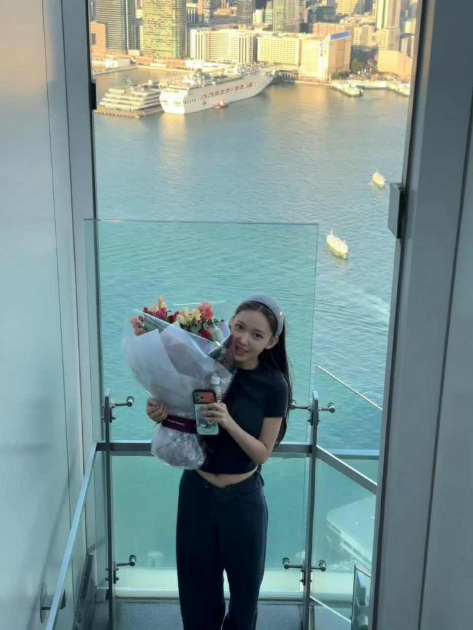 张天爱跟素人合影,胯真的好宽,大宅院似的