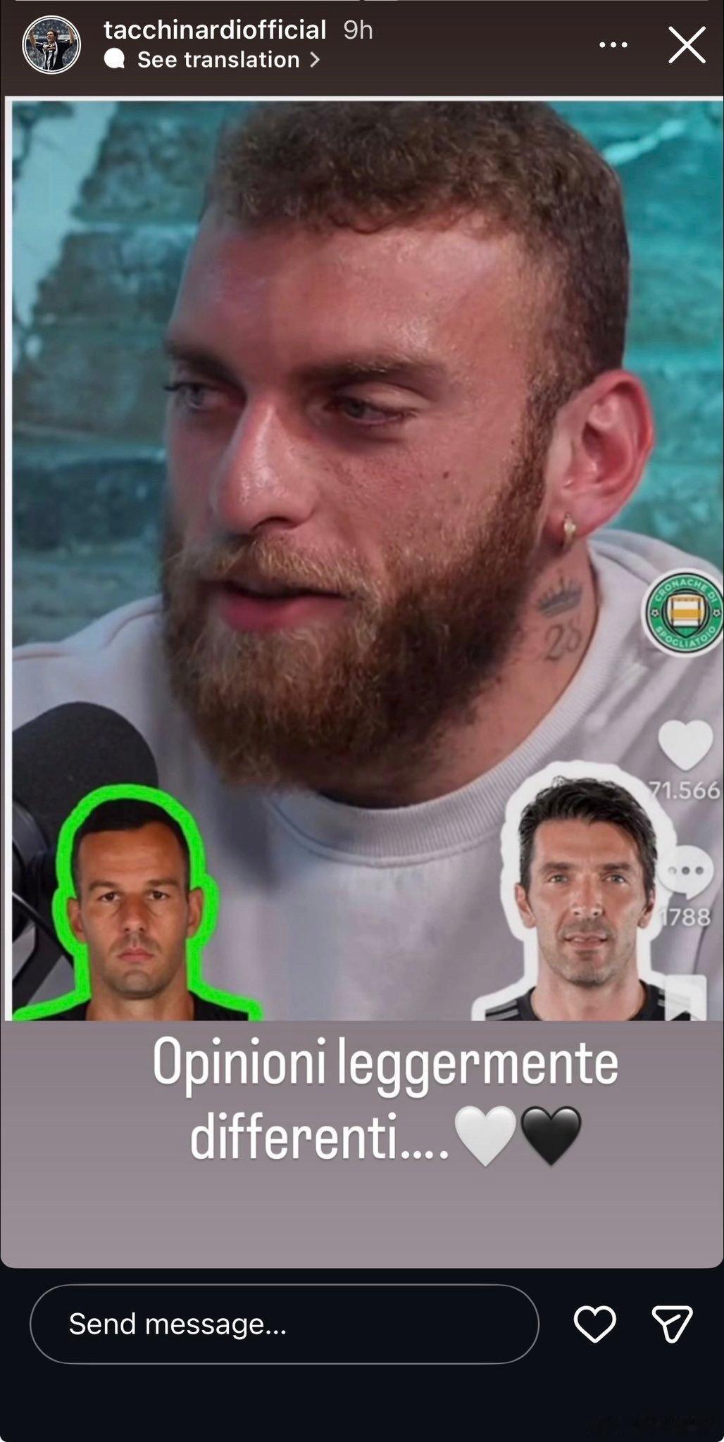 难绷,塔奇纳蒂直接开炮迪格雷格奥,后者在很久之前的一档节目中在汉达诺维奇和布冯二选一的短视频录制中选择了前者(意思是更喜欢前者或认为前者更强)。