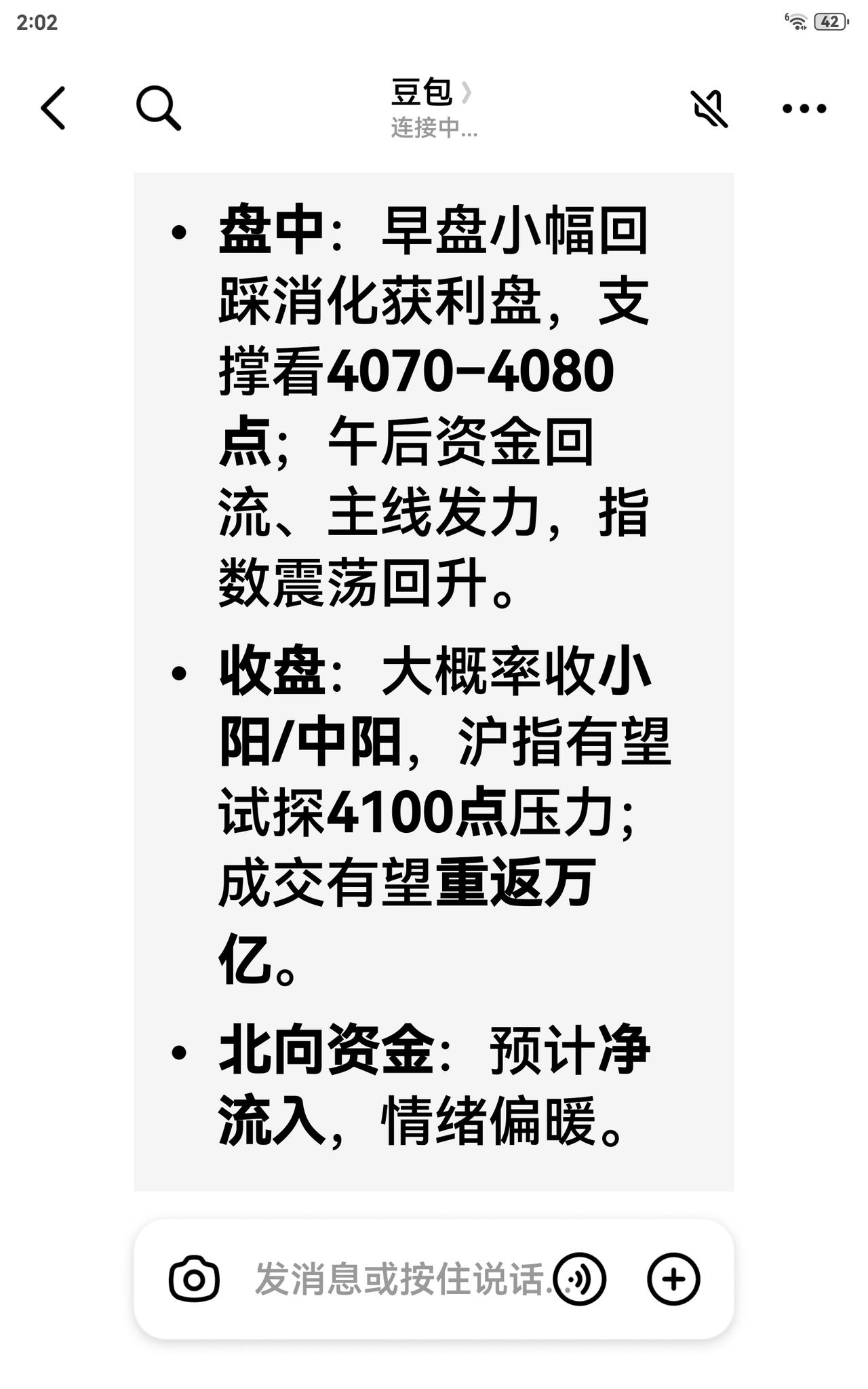 今天试用豆包查询明天股市行情,结果得出的答案挺祥细的,不知道准不准,做个参考吧!