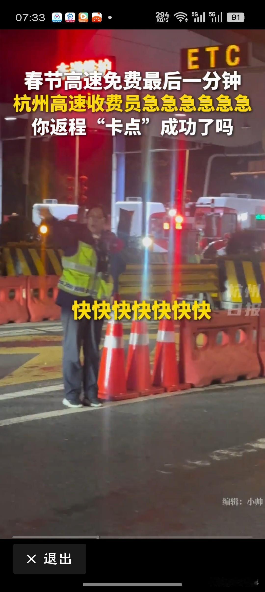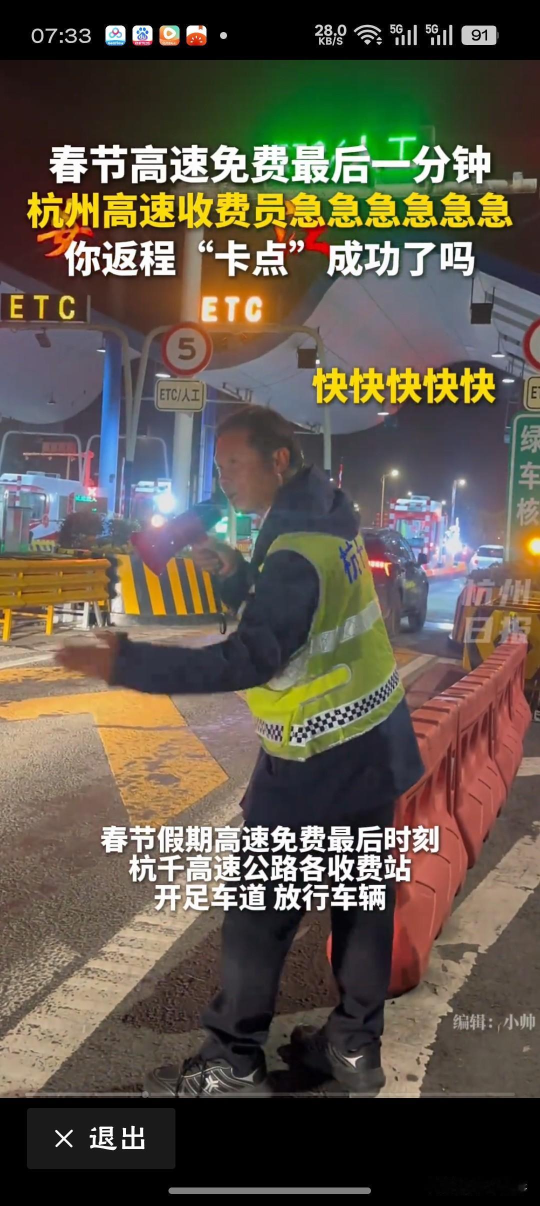 高速免费最后时刻收费员高喊快快快快高速免费最后时刻,收费员声嘶力竭大喊“快快快”,这一幕刷屏网络,也刷暖了人心。比司机还急的催促,不是为了赶人,而是为了帮人——帮他们在规则边缘抢回一分一秒的节省与安心。这声“快点”,是职责之外的温情,是制度之内的善意,更是基层服务者最朴实的职业闪光。他们站在寒风中,喊出的不只是提醒,更是一个社会应有的温度与共情。网友喊话“加鸡腿”,是致敬,更是心疼与认可。这样的“人情味”,值得被看见,更值得被点赞。