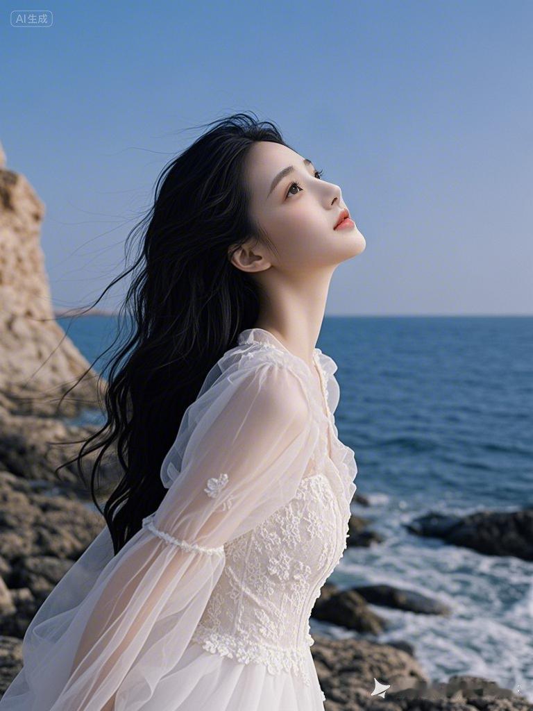 海边漫步,轻纱飘逸,梦回古代,唯美如画。