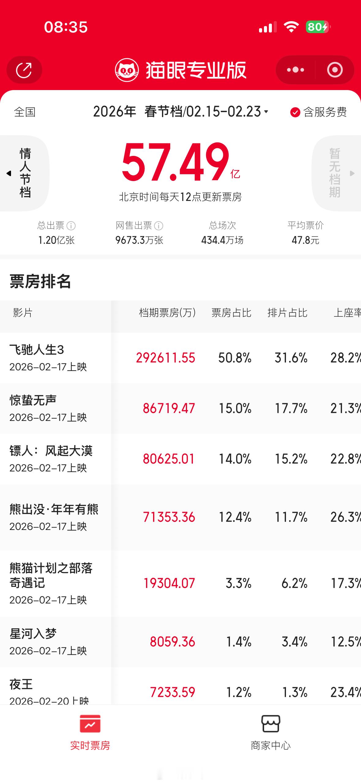 最近3年春节档电影票房2026年,57.49亿2025年,95.14亿2024年,80.16亿
