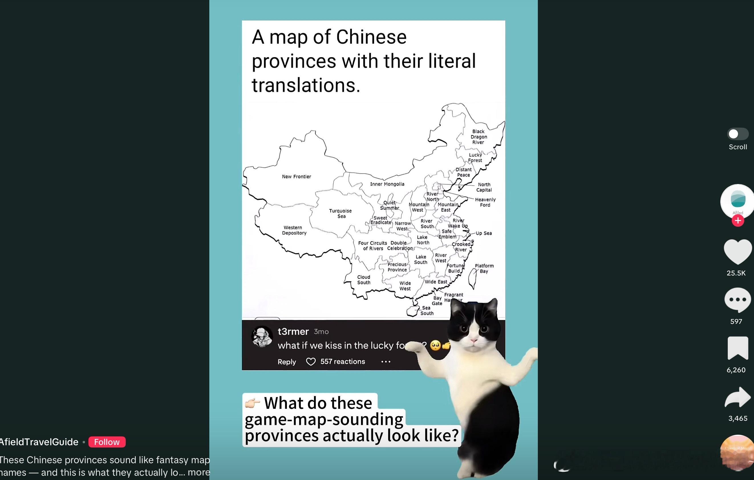 看到一条TT短视频给外国人科普中国各个省份的名称含义是什么,黑龙江是black dragon river,宁夏是quiet summer,辽宁是distant peace