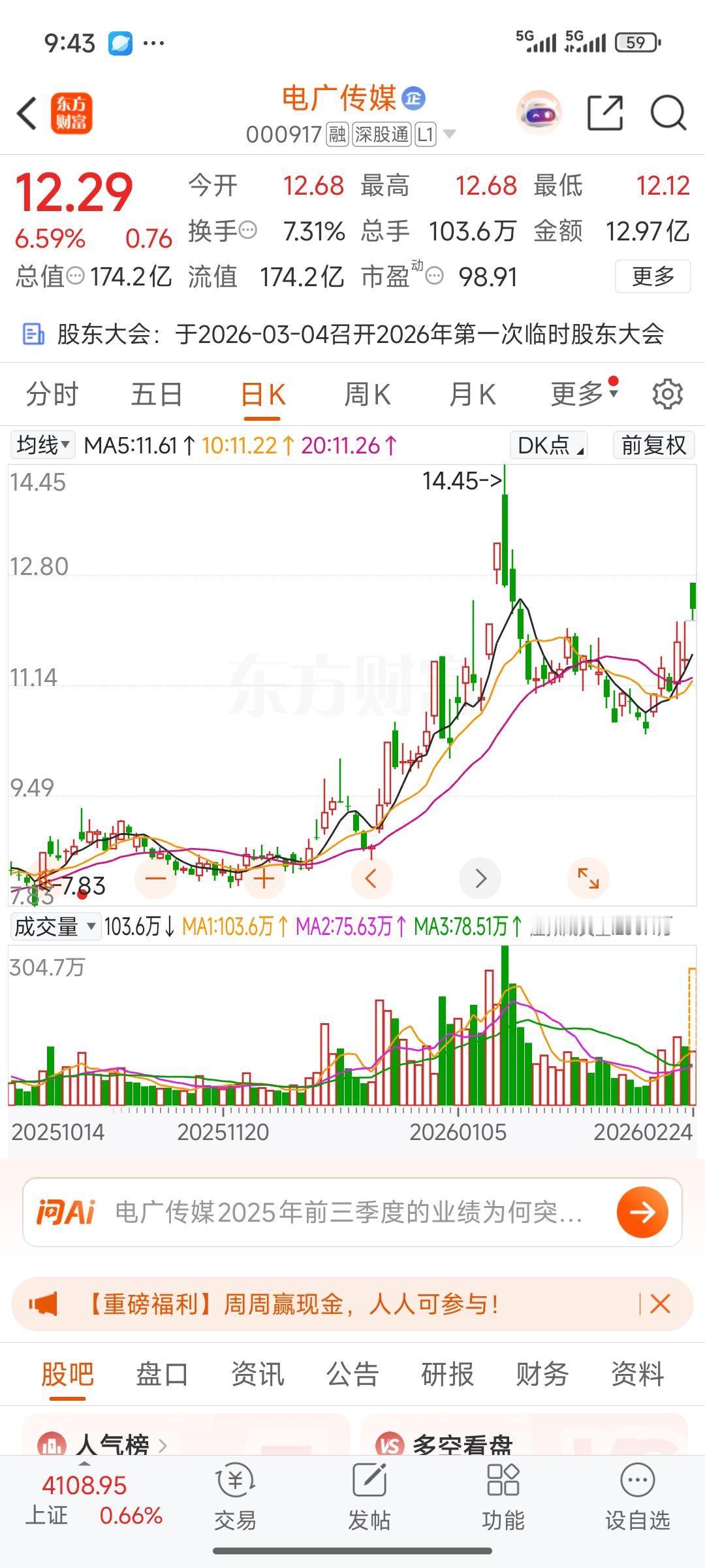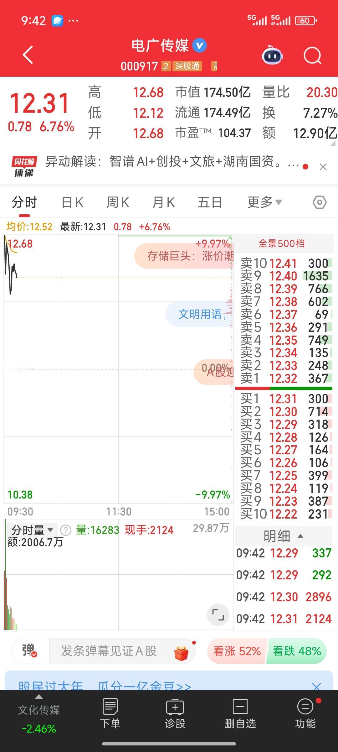 春节期间,智谱涨幅惊人,翻了六七倍。电广传媒今日并未以涨停开盘,看来存在两种可能。其一,主力目前筹码收集不足;其二,表明游资尚未介入该板块。所以目前走势不温不火。毕竟其本身质地优良,社保等机构或许介入较深,没有主力能够独自拉升。目前看来,只能耐心等待,等待游资发掘并介入。短期内渴望其暴涨的想法可以打消了。 智谱IPO 智谱香港上市 智谱集团 智谱被追投 智谱登陆港股 网智股份 智谱经济