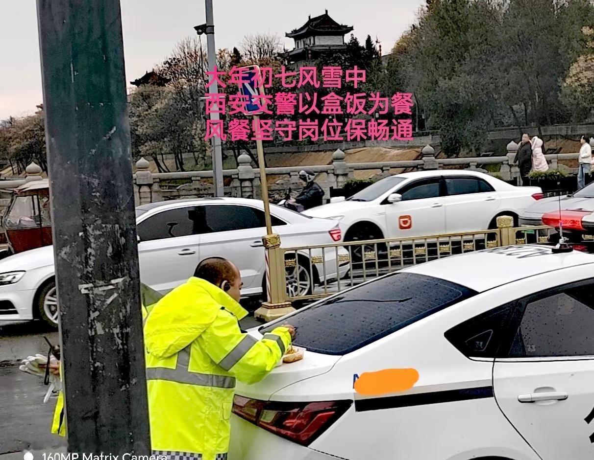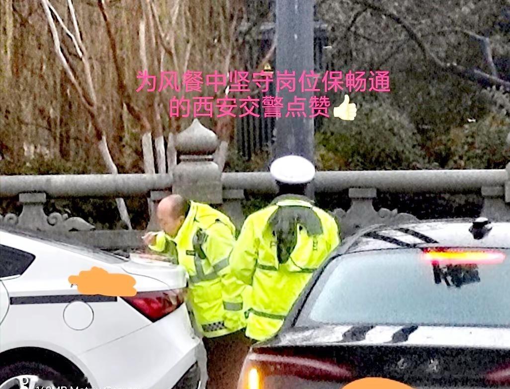 大年初七雨雪中,偶遇执勤的西安交警,风雨无阻护平安,你们是城市最美的守护者!!交警