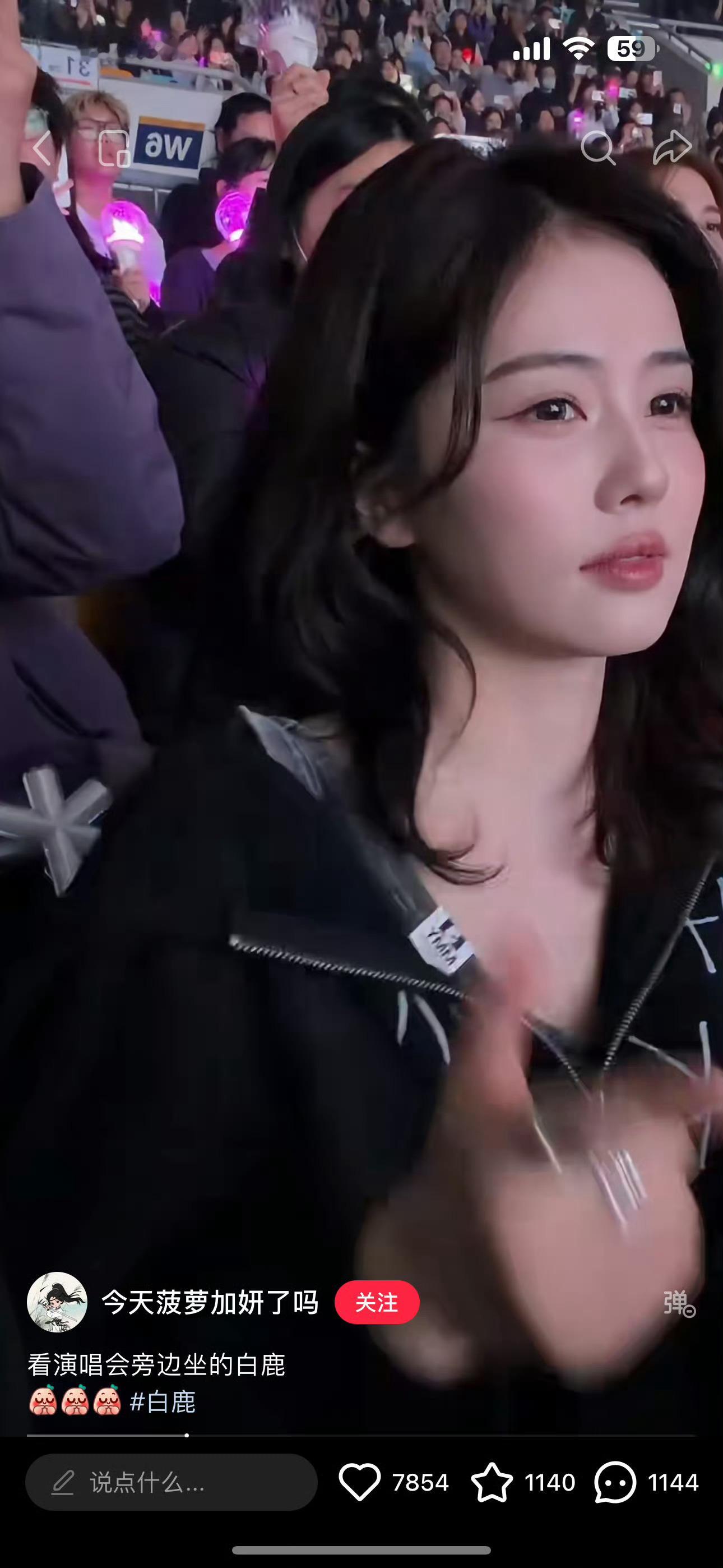 演唱会旁边坐的是白鹿 这让我想起了那张著名的骨相照….