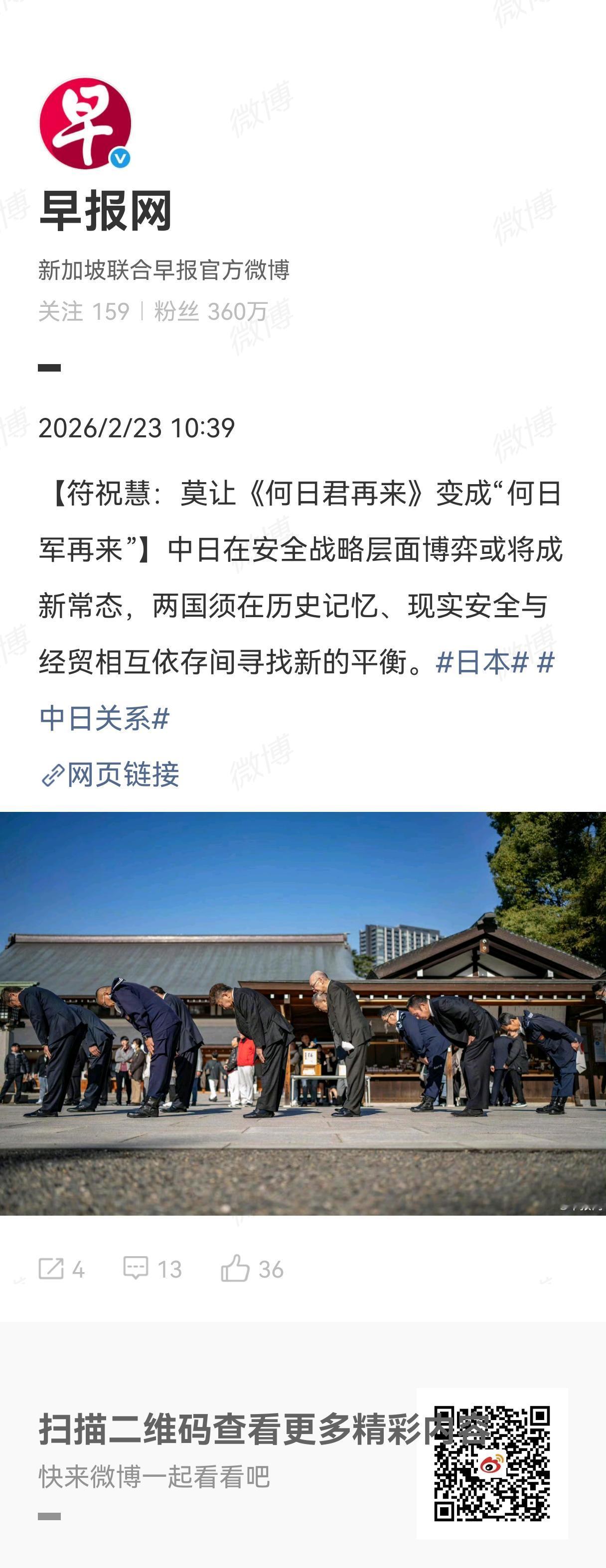 简单介绍一下本条新闻背景: 符祝慧:新加坡《联合早报》 驻日本东京特派员/通讯员,报道领域:日本政治、社会、福岛核事故、民生等议题。 事件背景:日本军国主义曾经把歌曲《何日君再来》恶意篡改为《何日军再来》,用作侵略宣传“战歌”。 符祝慧这篇文章批评了日本近年来军国主义抬头的趋势越来越明显,军国主义阴魂不散,劝导日本应该正视历史,避免再重蹈覆辙。 这篇文章发布于珍珠港事件84周年、东京审判80周年节点,针对性极强,这也应该是新加坡目前的官方态度。