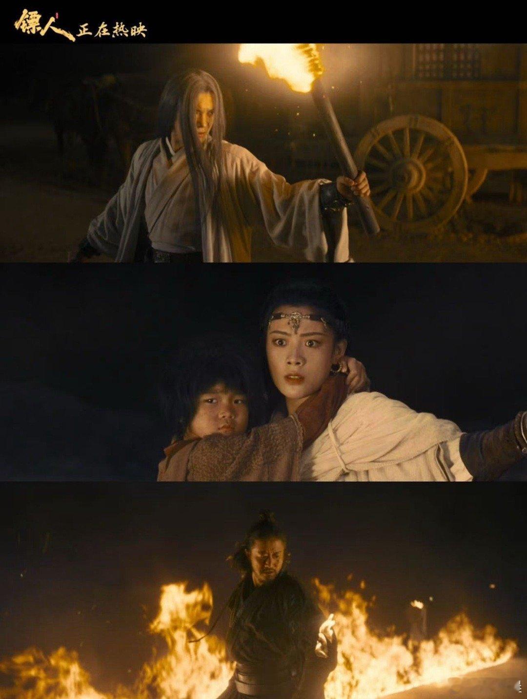 镖人打戏真火实拍吴京于适镖人火战打戏 现在还能看到这种真火实拍的打戏真的太珍贵了,演员们举着火把真打真摔,每一帧都是玩命换来的。