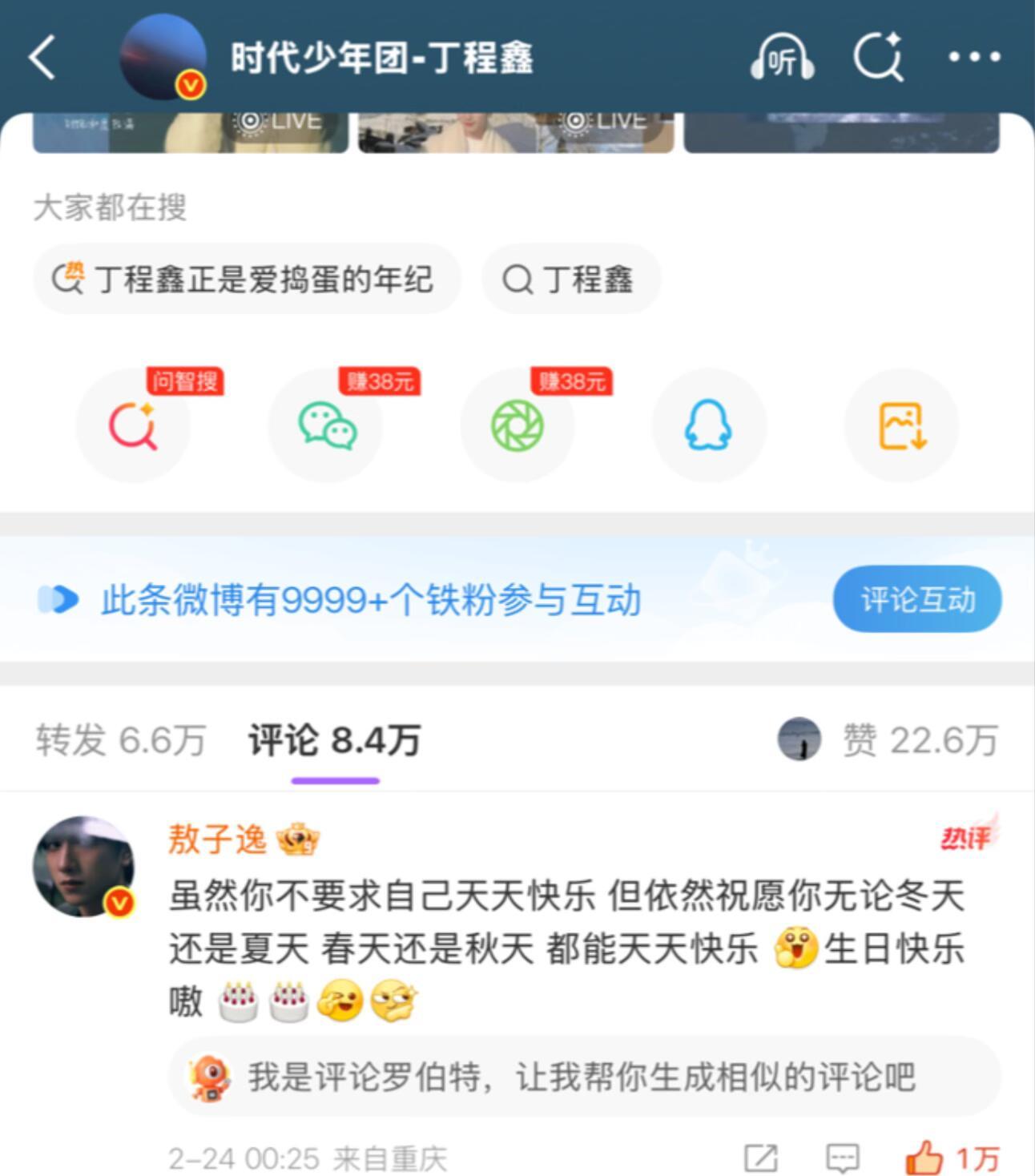 不是我真哭了我真心的觉得三爷的这句评论已经赢麻了,太真心太懂他了丁程鑫 |