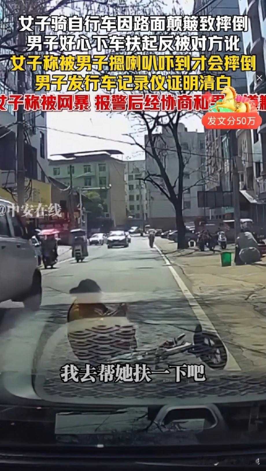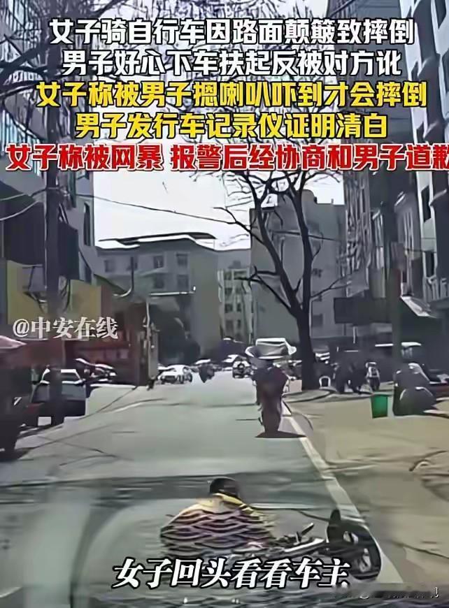 自找的!江西萍乡,一女子骑车外出,因路面颠簸不平摔倒,后面轿车司机立即停车,上前扶起女子。女子没有一句感谢,却当场反咬一口,说是被司机按喇叭吓到了,报警后,司机只好提供行车记录仪自证清白,不料,视频曝光后,女子称被网暴。网友:自找的! 事发当天,一位女子骑着自行车在街道上正常前行。 这条街道的路面有些坑洼不平,女子没太留意,自行车突然被路面的小坑绊了一下,车身剧烈颠簸起来。 她一时没稳住,整个人连人带车摔倒在地。 这一摔可不轻,膝盖和手掌都擦破了皮,疼得她直咧嘴。 就在女子摔倒后还没来得及起身的时候,后方一辆汽车缓缓驶来。 开车的是一位热心肠的男子,他看到前方有人摔倒,第一反应就是赶紧下车去帮忙。 男子把车停好,快步走到女子身边,关切地询问她有没有受伤,。 先帮她扶起压在身上的自行车,又将她轻轻扶起,还主动问她要不要去医院检查一下。 可谁能想到,这好心之举却引来了麻烦。 女子看到司机下车过来,突然就翻了脸,一口咬定是男子开车按喇叭吓到了她,才导致她摔倒的。 男子一下子就懵了,他明明记得,自己当时根本就没按喇叭。 而且看到女子摔倒后,自己完全是出于好心才过来帮忙的。 他急忙向女子解释,可女子根本不听,还大声嚷嚷着要男子赔偿她的损失。 周围很快就围过来一群人,大家你一言我一语地议论起来。 有人还指责男子不负责任。 男子心里又急又气,他知道自己遇上讹人的了,可又不知道该怎么证明自己的清白。 就在他感到无助的时候,突然想起车上装有行车记录仪。 他赶紧跑回车里,把行车记录仪里的视频调了出来。 视频里清楚地显示,男子开车的时候并没有按喇叭,而且距离女子摔倒的地方还有一段距离。 女子的摔倒,完全是因为路面不平造成的。 男子拿着视频回到女子身边,耐心地给她看,希望她能明白自己真的是被冤枉的。 可女子看了视频后,不仅没有道歉,反而态度更加恶劣,还说视频可能是假的,坚持要男子赔偿。 男子无奈之下,只好把视频发布到了网上,想让网友们评评理。 视频一发布到网上,不料一石激起千层浪。 网友们纷纷指责女子的行为,认为她这是典型的讹人,太不地道了。 女子的个人信息也被网友们扒了出来,各种难听的话,铺天盖地地向她涌来。 女子这下可慌了神,她没想到事情会发展成这样。 她开始抱怨自己被网 暴,觉得网友们太过分了,不应该这样对待她。 女子报了警,说自己受到了伤害。 警方介入后,对事情进行了调查和协商。 在警方的调解下,女子最终认识到了自己的错误,向男子道了歉。 可这件事虽然看似解决了,却留给了大家太多的思考。 尤其最近一段时间,类似的事情发生了不是一起。 大家不禁要问,为什么会出现这样讹人的现象呢? 就拿这次事件来说,女子明明是自己骑车不小心摔倒,却为了获取利益,昧着良心去讹帮助她的好心人。 这种行为不仅伤害了男子的感情,也让社会的信任度受到了影响。 而且,女子在被揭穿后,没有第一时间反思自己的错误,反而抱怨网友。 可如果当时没有行车记录仪,司机又该怎么办呢? 司机有可能,会因为她的讹诈而陷入无尽的麻烦。 不仅要承担不必要的经济赔偿,还可能会受到周围人的误解和指责。 这对于一个热心肠的好心人来说,是多么大的伤害啊。 其实,讹人现象屡禁不止,归根到底还是讹人的代价太低了。 就像这次事件中,女子只是道了个歉就了事了。 她并没有为自己的错误行为付出足够的代价。 这就导致了一些人,在面对利益诱惑时,会毫不犹豫地选择去讹人。 因为他们知道,即使被发现了,也不会受到太严厉的惩罚。 如果对于讹人的人,除了要求他们道歉赔偿外,可建立黑名单制度。 将他们的不良行为记录在案,限制他们在社会中的一些权益。 让每个人都明白,诚实守信是做人的基本准则,讹人这种行为是不道德的,也是违法的。 法律也要给好人撑腰,不能让好心人寒心,不能让讹人现象继续蔓延下去。 依据《关于依法办理“碰瓷”违法犯罪案件的指导意见》中关于“碰瓷”行为的认定:“碰瓷”是指行为人通过故意制造或者编造其被害假象,采取诈骗、敲诈勒索等方式非法索取财物的行为。 上述条款明确了“碰瓷”行为的定义和特征。 女子骑车因路面颠簸摔倒,司机好心搀扶。 女子不但不感恩道谢,却编造是被司机按喇叭吓到才摔倒的假象,还要求司机赔偿。 其行为符合“编造被害假象”“非法索取财物”等“碰瓷”行为特征。 当我们遇到类似情况时,能意识到对方可能是在“碰瓷”,从而采取正确的应对措施。 如保留证据、及时报警等。 法律对这类行为的界定:碰瓷不是简单的道德问题,而是是违法行为。 对司机好心扶起摔倒女子反被讹,评论区发表您的看法。 天南地北大拜年 关注@赵哥的法律观,明辨是非不上当。