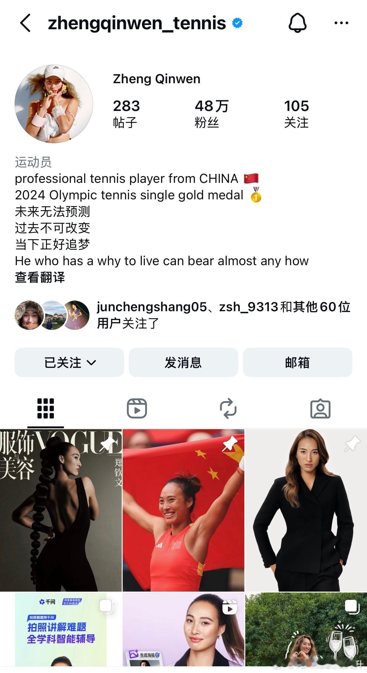 👉🏻郑钦文取关佩雷里巴引发猜测2026年2月23日-24日:网友发现郑钦文在社交媒体Instagram上取关了佩雷·里巴,同时更换头像并将个人简介改为尼采名言“一个人知道自己为什么而活,就可以承受任何一种生活”。此举引发外界对师徒关系生变以及团队再次调整的广泛猜测。目前,郑钦文团队尚未对此做出正式回应。