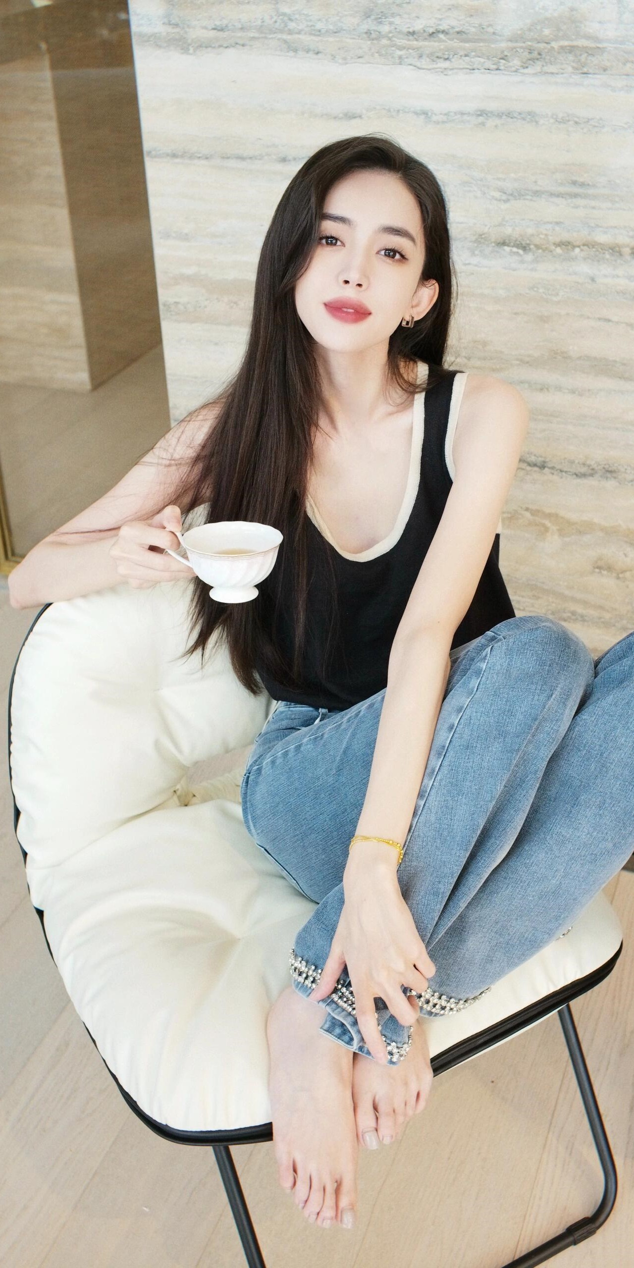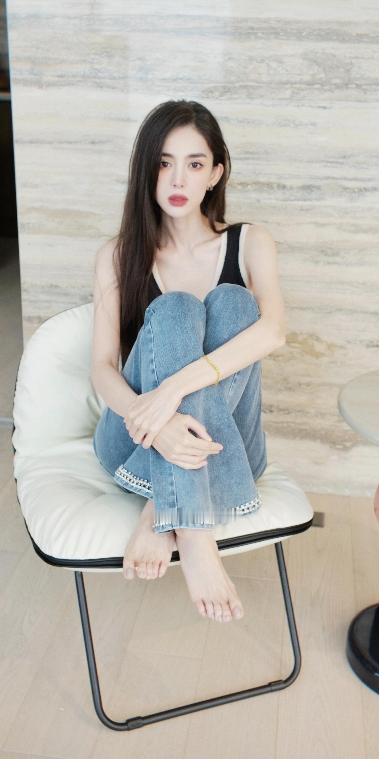 古力娜扎私服,俏皮的光脚丫。娜扎