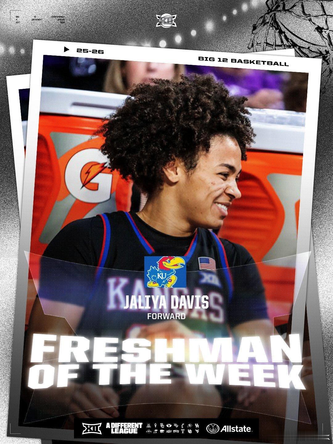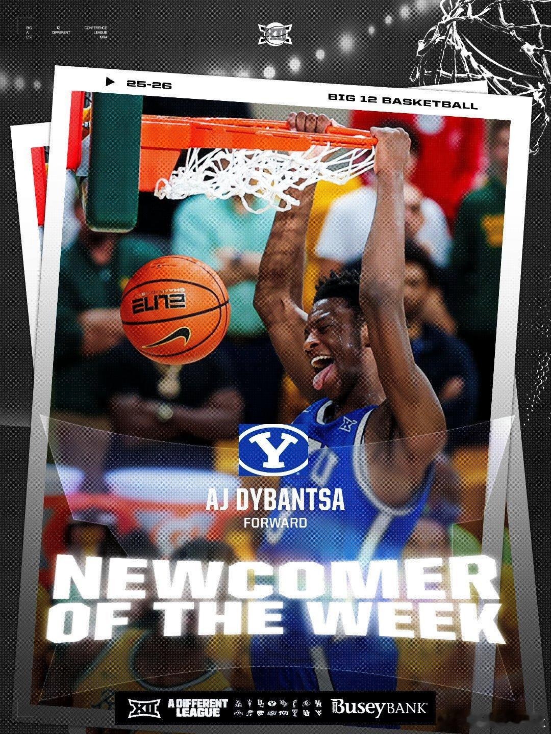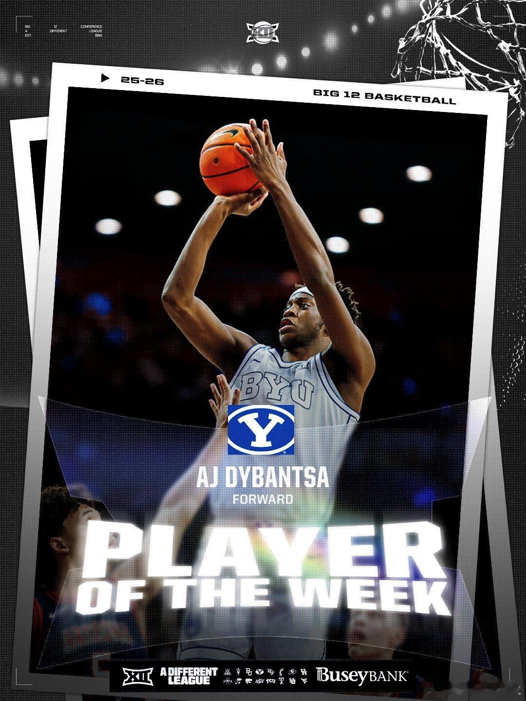 Big 12联盟第16周表现奖(2025-2026赛季)。NCAA男篮最佳球员+最佳新生:AJ Dybantsa。NCAA女篮最佳球员:Olivia Miles,最佳新生:Jaliya Davis、Olivia Hamlin。