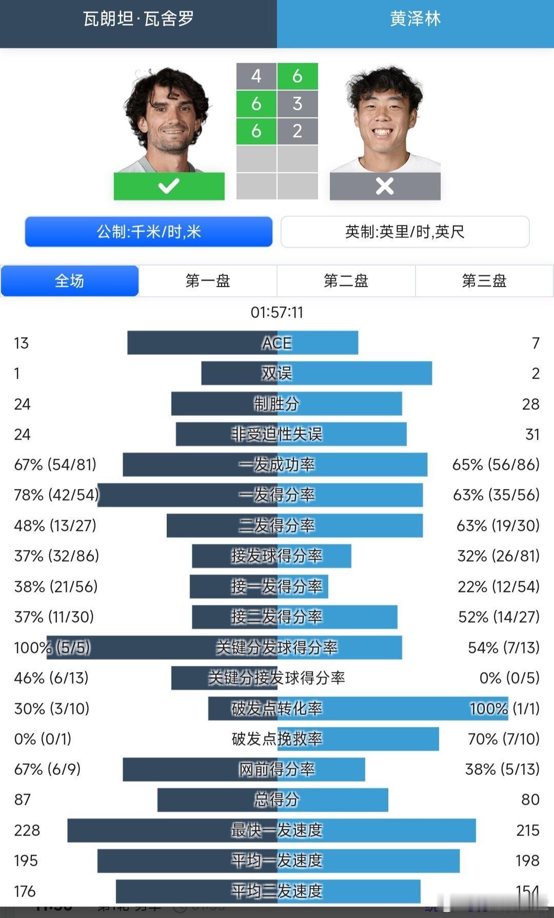 幸运落败者黄泽林🇭🇰6-4/3-6/2-6不敌瓦舍罗🇲🇨,止步首轮。下一站加油!