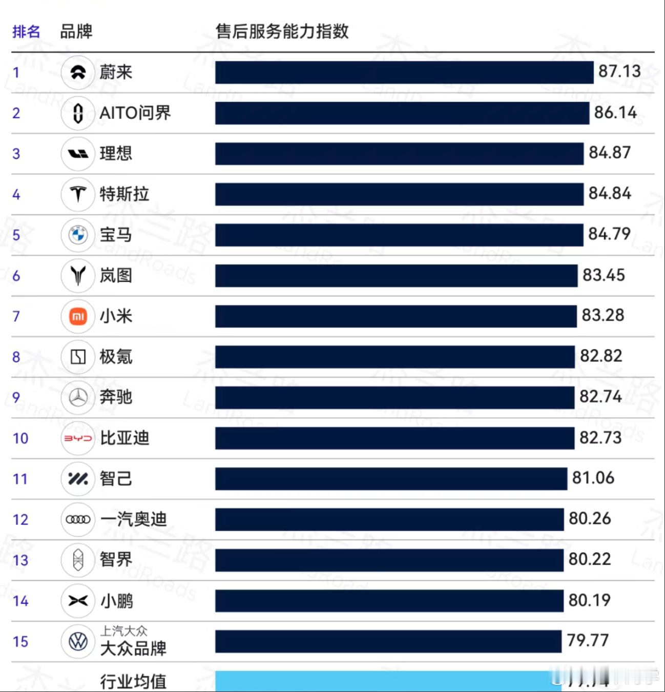当然高端化最难的也不仅仅是先站住,卖完车之后的事同样很难。杰兰路有个售后服务能力报告,今年问界售后服务指数是86.14分,行业均值79.74,多出来的那7-8分,也同样可以作为高端品牌的竞争力。
