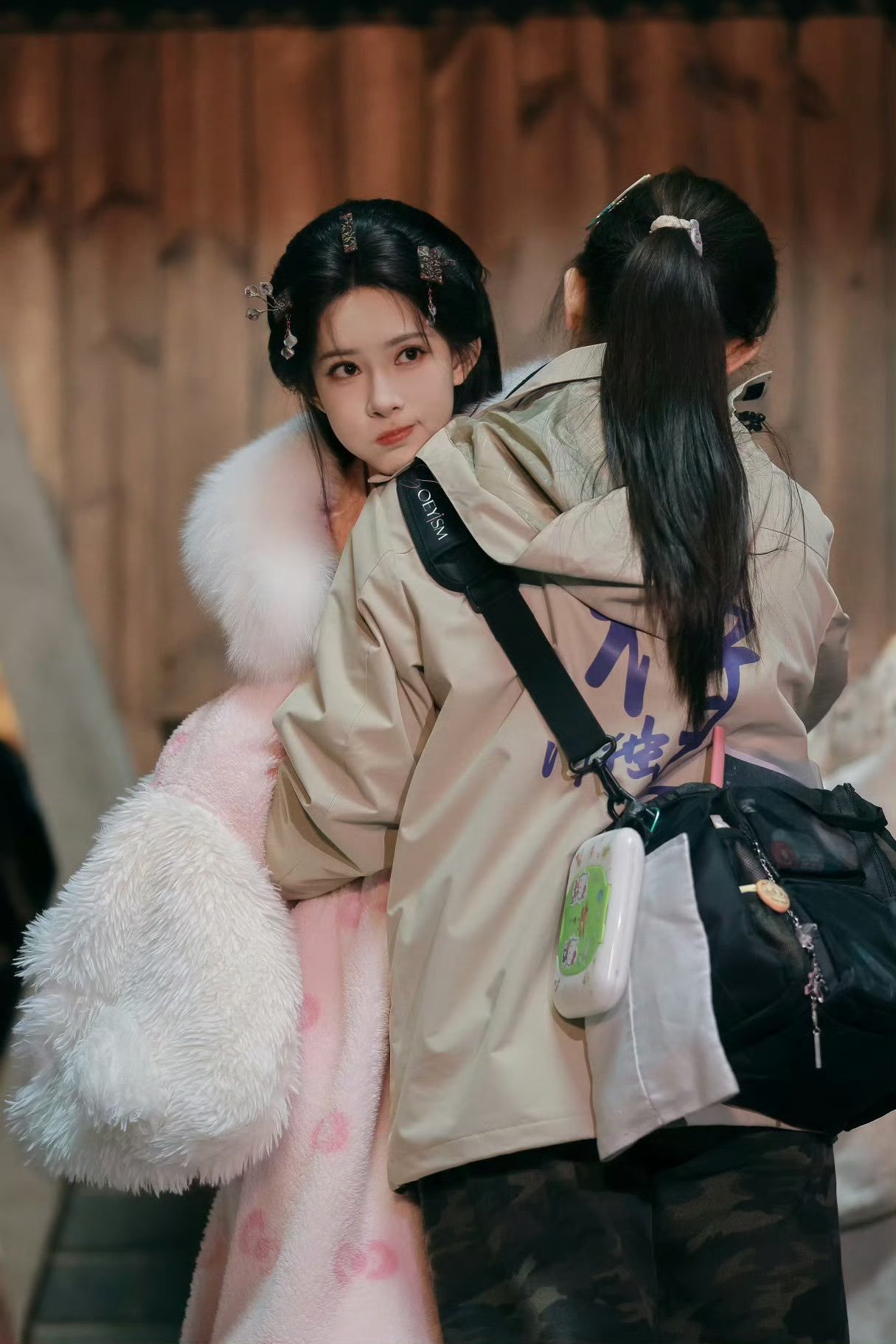 张天爱跟素人合影,胯真的好宽,大宅院似的