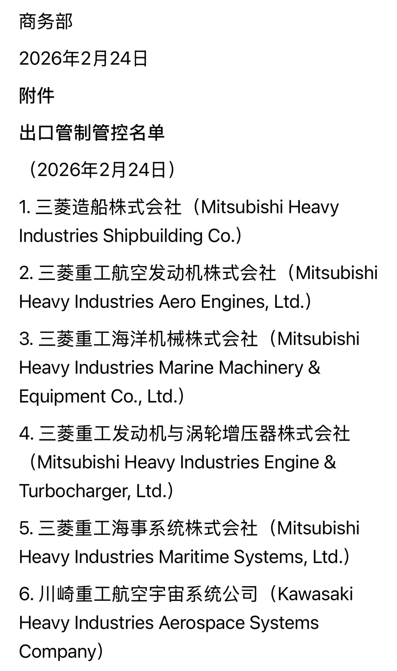 商务部2026年第11号公告一出,直接将20家日本实体列入出口管制管控名单,这波操作太刚了! 日本玩的军民融合套路一直很隐蔽,像三菱重工,表面搞重型机械,实际是日本军工核心,坦克年产能达两千辆;川崎重工平时卖摩托修高铁,战时能造军用飞机,还为美国爱国者导弹供核心元件。 日本这种产能转换潜力惊人,若动用部分产能,军机、坦克、军舰产量都能大幅提升。这次商务部出手,禁止向这些实体出口两用物项,就是要遏制日本军事实力提升,维护国家安全和利益,给这波操作点赞!
