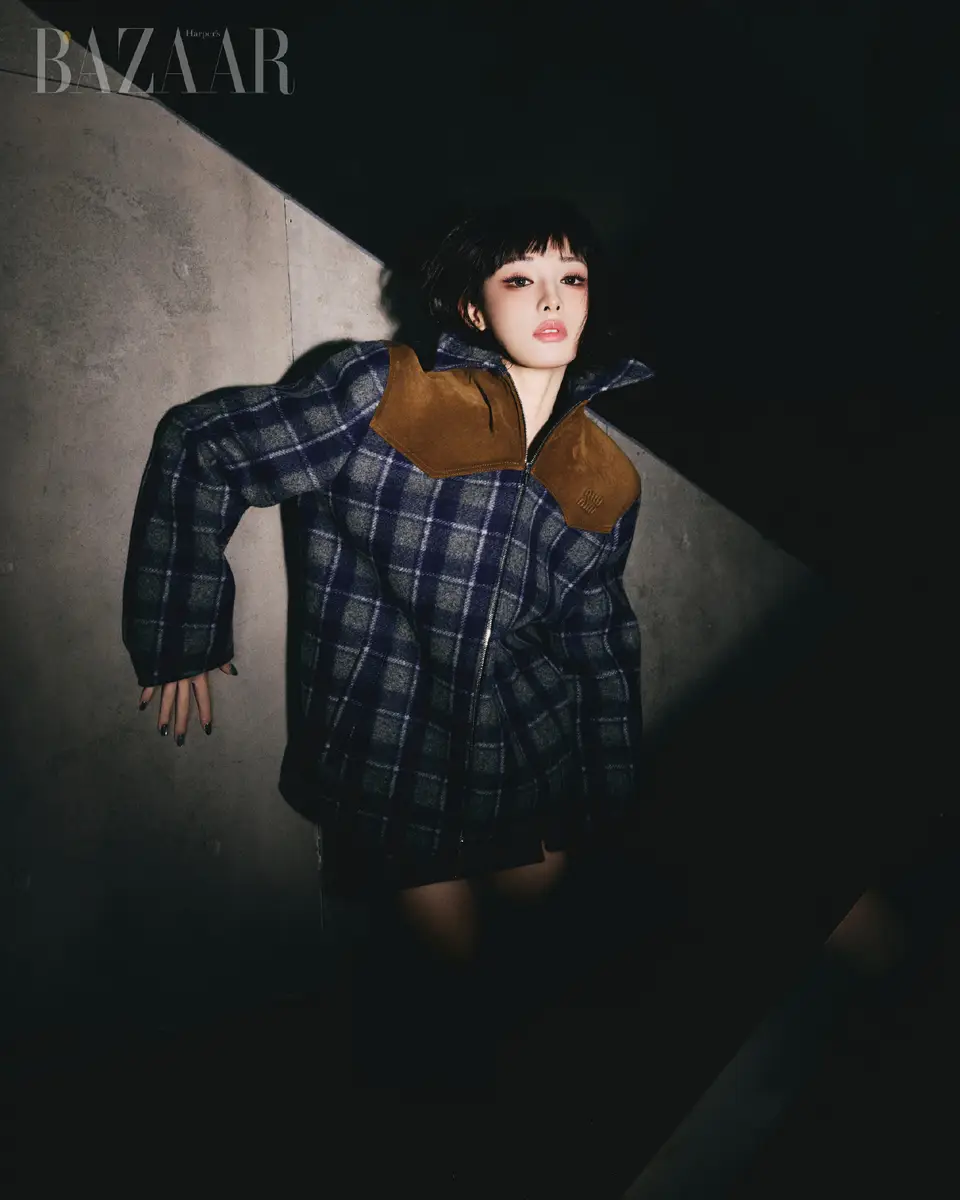 彭小苒穿斜肩礼服搭配复古短发灵动俏皮 锁骨线条纤细吸睛