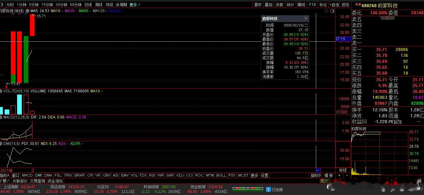 收盘价:35.71元。涨跌幅:19.99%。股票连涨:2天。