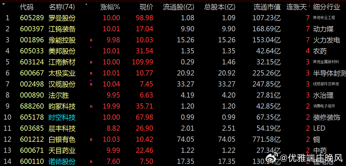 涨停龙头:惊艳今日:大涨主要:易天股份、汉邦高科、安达维尔等个股涨停。带动市场:商业航天、信息安全、半导体及光模块(CPO)等细分领域全面走强。欲知推手:下面透视涨停板龙头股票: