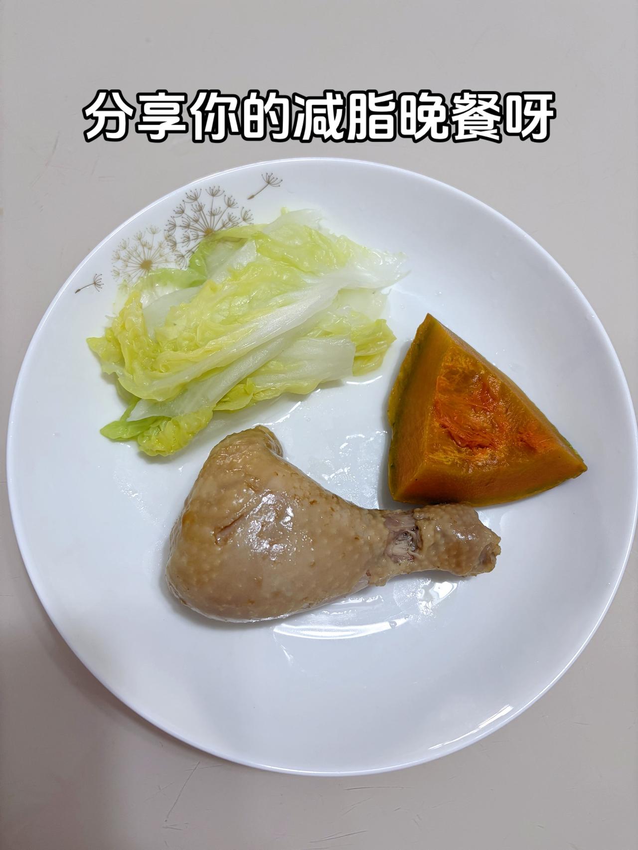 泪水打湿我的减脂餐,目标95斤,加油 今日减脂晚餐:白菜+去皮鸡腿+南瓜