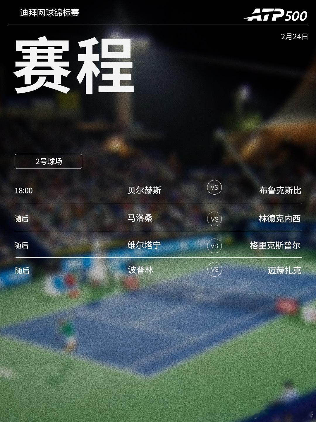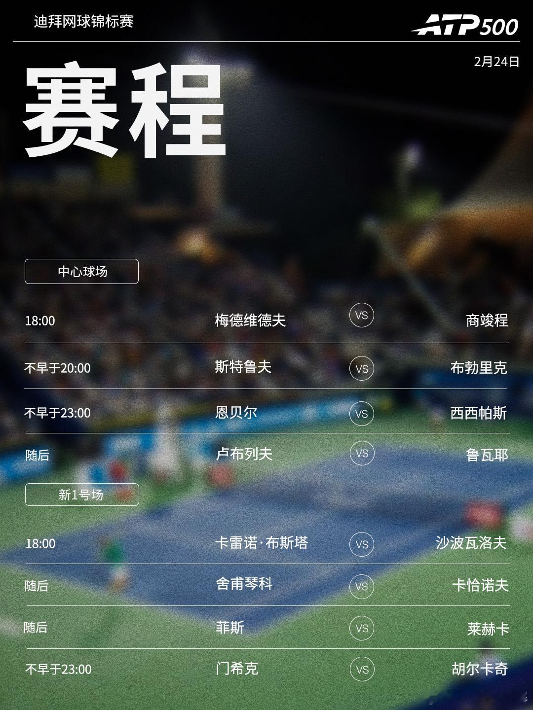 ⭕️ ATP500迪拜网球锦标赛📍阿联酋·迪拜🎾 商竣程再战梅德维德夫,卫冕冠军西西帕斯、布勃里克卢布列夫迎首秀。
