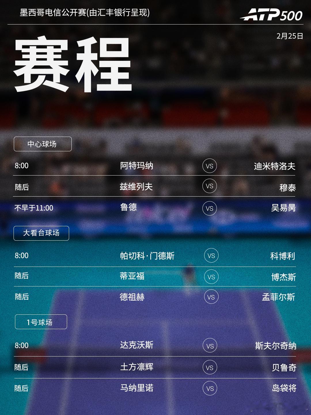 ⭕️ ATP500墨西哥电信公开赛(由汇丰银行呈现)📍墨西哥·阿卡普尔科🎾 迪米特洛夫、兹维列夫亮相,吴易昺挑战3号种子鲁德。