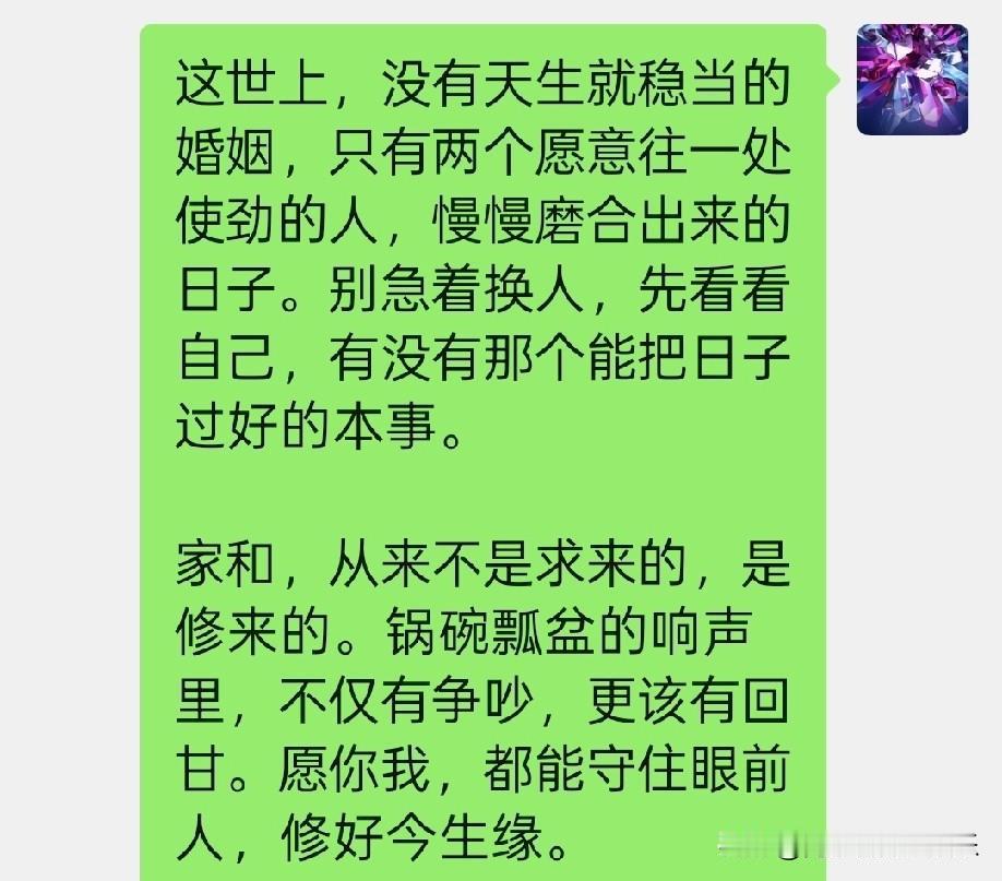 一大早的,手机跟炸了似的响起来。 眯着眼一瞅,是老娘。心里咯噔一下,得,肯定又是那点破事,大初八的也不让人消停。 果然,电话那头老娘的声音又急又燥,说弟弟跟现在的弟妹又干起来了,这次闹得凶,锅碗瓢盆摔得震天响,她拦都拦不住。让我赶紧回去一趟。挂了电话,我窝在床上,那叫一个心烦意乱。 我这个弟弟啊,真是上辈子来讨债的。头婚,年轻气盛,过不下去,离了。二婚,好不容易消停两年,又因为经济和孩子的问题闹掰了。这是第三回了,当初娶这个媳妇的时候,全家都烧高香,盼着能踏实过日子。 这才多久?一年不到,又开始了。 开车往回赶的路上,我脑子里就跟放电影似的。想起弟弟头一次结婚时婚时,爸妈砸锅卖铁给盖了房。二婚时,又东拼西凑给了彩礼。 这一回,老两口把棺材本都掏出来了。每一回都盼着是终点3站,结果呢,回回都是中途岛。 到家门口,就听见里头吵得不可开交。我没急着进去,就站外头点了根烟。 心里头堵得慌,你说这婚姻,到底是什么东西?怎么在别人那儿是避风港,到我弟弟这儿就成了修罗场? 三婚了,难道真的就靠不住吗?还是说,他压根就没学会怎么去经营一个家,怎么去疼一个人? 一根烟抽完,里头声音小了。我推门进去,满地的狼藉,弟妹坐在沙发上抹眼泪,弟弟蹲在墙角抽闷气。老娘在一旁唉声叹气。 我没说话,默默拿起扫帚收拾碎碗。那一刻我突然明白,婚姻这事儿,跟结几次婚真没关系。心不定,换一百个人也是白搭。自己立不起来,给个金窝也得拆成狗窝。责任、担当、包容,这些词说起来轻巧,做起来,那是要扒一层皮的。 后来,我把弟弟拽出去喝了一场酒。没劝他什么大道理,就问了他一句:姐给你拿了三回结婚的红包了,你打算什么时候,让我喝上一碗你亲手端的、安生日子的茶?他闷头喝酒,没吭声。眼眶红了。 看他这样,我的心里也很难受!想想我站起来拍了拍他的肩膀,“好好想想吧!” 回到家里拿过手机给他发了个信息,只有几句话。爱听不听吧!我也没办法了。 屏幕前的你们能帮我支个招吗?