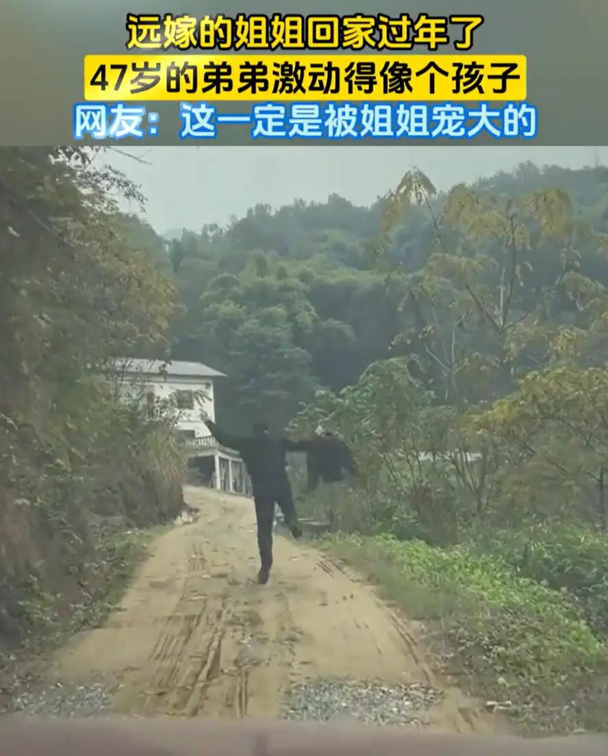 笑着笑着就哭了!远嫁的姐姐过年回娘家,结果车子刚到村口,就看到47岁的弟弟早就等在这里,他也没上车,一路蹦蹦跳跳的在前面领路,开心的像个孩子。网友:这一定是被姐姐宠大的 手机镜头里的画面抖得厉害。不是乡下土路颠的,是举手机那只手在发抖。 车窗外头,一个两鬓斑白的男人正小跑着。时不时蹦跶两下,猛地扭头朝车里挥手,嘴角那弧度根本藏不住。 2月21日这天,说句实在话,要不是亲眼瞅见,村里人打死也不信,眼前这个手舞足蹈的背影,就是那个开了二十多年拖拉机的糙汉子。 四十七了。谁家翻地都找他,出了名的硬骨头,天塌下来自己扛。可这会儿连车都不上,非要在车头前面带路。 车里抹眼泪的女人,是他远嫁外地的亲姐。赶了一路的疲惫,在瞅见路边那个翘首以盼的身影时,瞬间就绷不住了。 车开得贼慢,轮子压过的土路平平整整。姐姐八成想不到,这条常年被大农机压得坑坑洼洼的村道,今儿咋这么好走。 天还没亮透,这男人就扛着铁锹出门了。一锹泥一把土,愣是把进村路上的暗坑全给填平了,就怕颠着一年才回一趟娘家的姐姐。 所有的心思都藏在暗处使劲儿长。老屋墙皮的裂缝抹得严严实实,厨房铁锅擦得锃亮,连床单被罩都换成了带着太阳味儿的新货。 他还专门跑了趟镇上集市,就为找一种老式橘子糖。几十年前穷得叮当响,一块破糖果,是姐弟俩你一口我一口分着吃的顶级奢侈品。 这些事他一个字没提。在四十七岁男人的脑回路里,迎接不用废话,只要让回来的人看到平坦的路和干干净净的炕头就够了。 在外人跟前竖起的硬壳子,在血脉面前自动就卸了。还端着顶梁柱的架子?不需要。他理直气壮地变回了那个跟在姐姐屁股后头的小屁孩。 把时间往回倒,倒到上世纪八九十年代的中国农村。那会儿家家孩子多,爹妈成天在黄土地里刨食,大的拉扯小的是铁打的规矩。 放学路上攥紧的手,被人欺负时挡在前头的瘦肩膀,捏在手心里攥出汗的一毛钱。这种苦日子熬出来的情分,早就刻进骨头里了。 这段晃晃悠悠的视频传到网上,跟深水炸弹似的,一下子就炸穿了无数远嫁女人的心理防线。 评论区里全是扎心的共鸣。点赞最高的那句话直戳要害:"这男人,一看就是从小被姐姐给宠大的。" 有人想起自己回乡时,那个成天蹲在村口抽烟张望的兄弟。有人想起大雪天骑着破摩托,在国道岔路口冻得直跺脚的瘦高个。 成年人的世界太他妈残酷了,天天逼着你算计得失。只有回到娘家那一刻,什么社会身份全被扒掉,你就是你自己。 车还在慢慢往前挪。前头那男人步子越来越轻快,不停回头瞅,活脱脱就是当年讨到半块橘子糖后乐颠颠的小娃娃。 镜头最后定在那个蹦跳的背影上。姐姐啥煽情话也没说,就安静举着手机,任眼泪往下淌。几十年的光阴,全让这一段路给走透了。 信息来源:中华网2026-02-2216:21—远嫁姐姐回家47岁弟弟激动得像孩子亲情的温暖瞬间