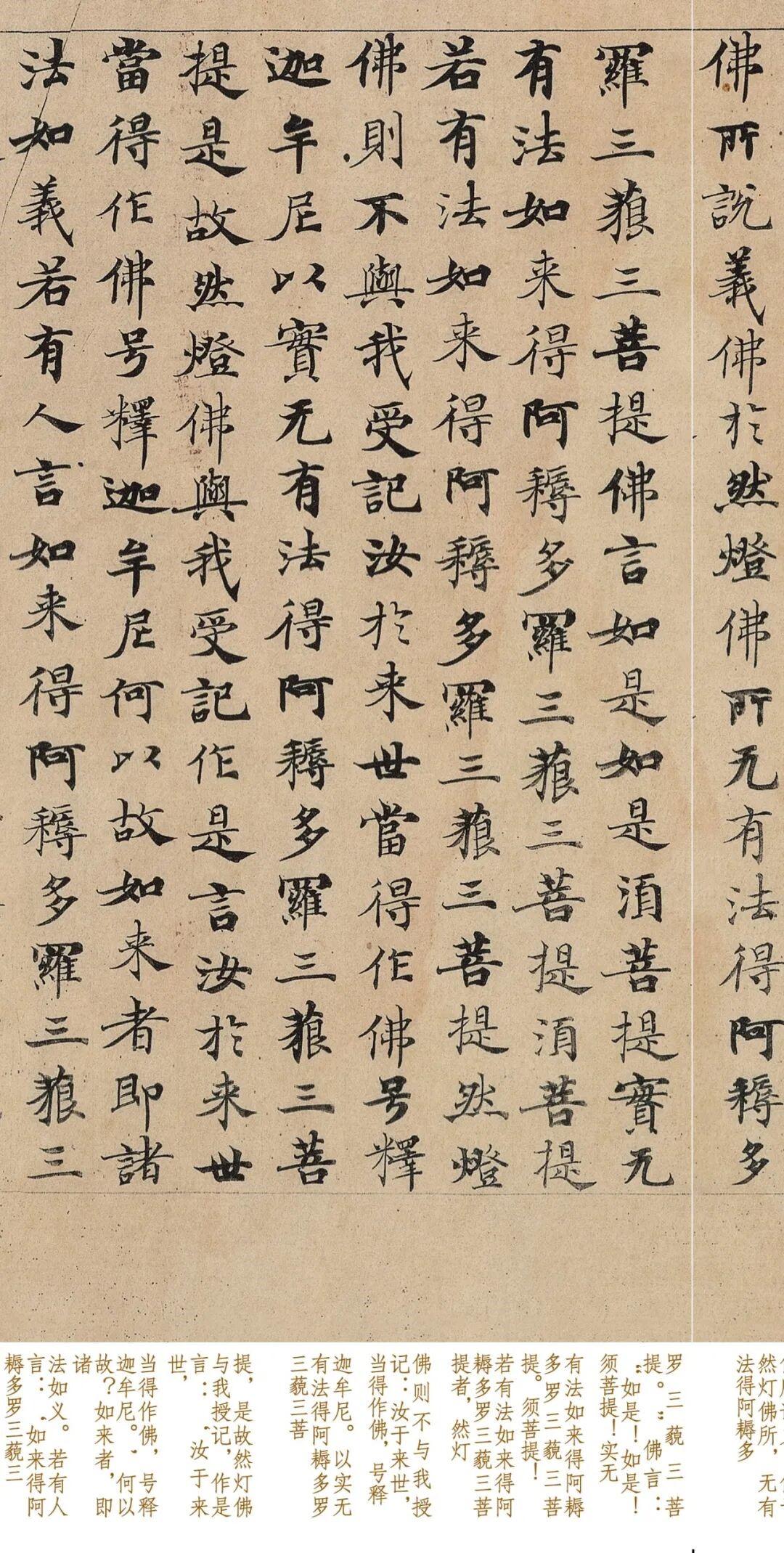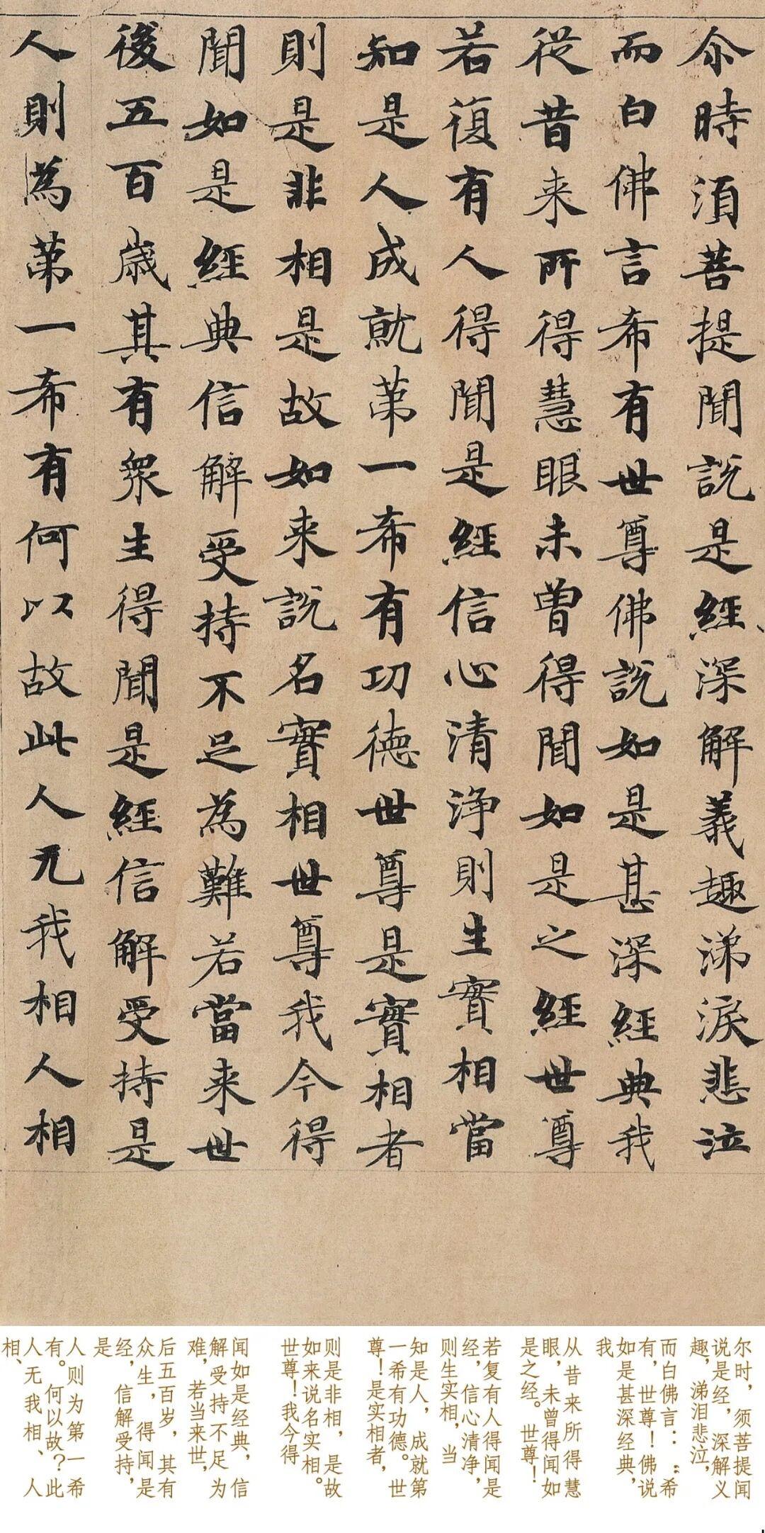 法国公开武则天《金刚经》真迹!估值高达100亿,欧颜柳赵也不是对手 谈及唐朝楷书,我们想到的词语,大多是端正、肃穆等,毕竟欧阳询、虞世南、柳公权等名家,均以“尚法”为主,用笔严谨,一丝不苟,从而导致后世听见“唐楷”,便感精严。 实际上,唐朝的楷书,除了严谨的“尚法”之风,还有武则天时期,风靡天下的“写经体”,据史料记载,武则天晚年痴迷经书,为了给母亲祈福,她组织一项大型的抄经工作。 经书内容浩瀚,若想从容不迫、精准优雅的抄写全文,控笔一定要强悍,保障字字优美,不会松懈、散漫,为了找到这样的高手,武则天全国选拔,择出一批人才,入宫严格培训,专门抄经。 这些经书多用小楷,与初唐不同,为了凸显经书的虚和气,它的笔画绰约俊逸、灵动优美,带有一定的波动起伏,并非一味恪守规范,而且随着规模化的创作,“抄经体”在朝野盛行。 同时1900年,敦煌藏经洞出土,卷内挖出5万多卷文书,多为“写经体”,其中还有很多的“官方写经体”甚至还出土一部武则天的手抄《金刚经》真迹。 此作乃是罕见的墨本真迹,共计5000余字,单字约为1厘米,因敦煌的气候干燥,全卷无缺损,字字生动润丽,武则天所采用的,亦是“写经体” 多是中锋运笔,点画圆融坚韧、通达灵活,笔画翻转提按等,变化有序,从容自如,飞率意动但毫不杂乱,给人一种清和出尘的美感,不夸张的说,此等水平和艺术境界,“欧颜柳赵”也不是对手 可惜令人遗憾的是,藏经洞现世之后,没有得到妥善保护,被外国人觊觎,当时他们以超低价值,选走数以千百的珍宝,这幅《金刚经》被伯希和看中,将其带回法国,秘藏了120多年。 近期终于将其公开,相关专家看后,称其价值100亿元,可见此帖的珍贵性,非常值得临摹,从中学习古人笔法,既得楷法,还能领会用笔的灵活意态,为日后学习其他名家,或者钻研行书,奠定基础。 而今,我们对小楷《金刚经》,进行1:1超高清复刻,推出便携经折装,加入现代字注释,帮助初学者识读,非常适合临摹与欣赏,与原作毫无二致,见此品如见原作,市面独此一家,若您喜欢可点击下方商品链接一观。