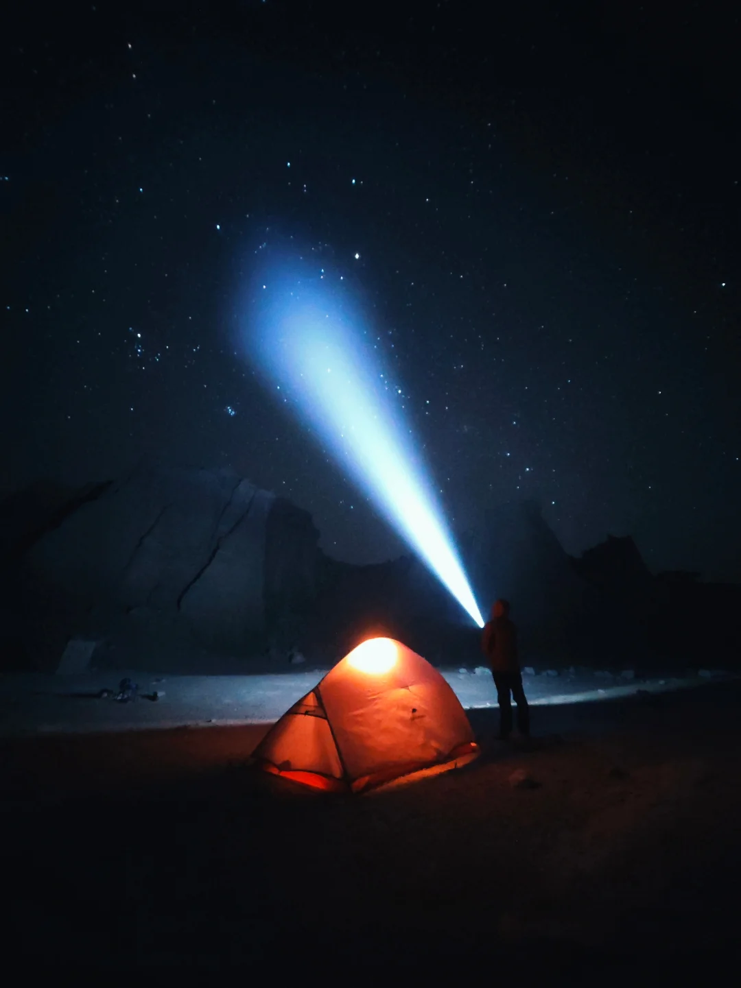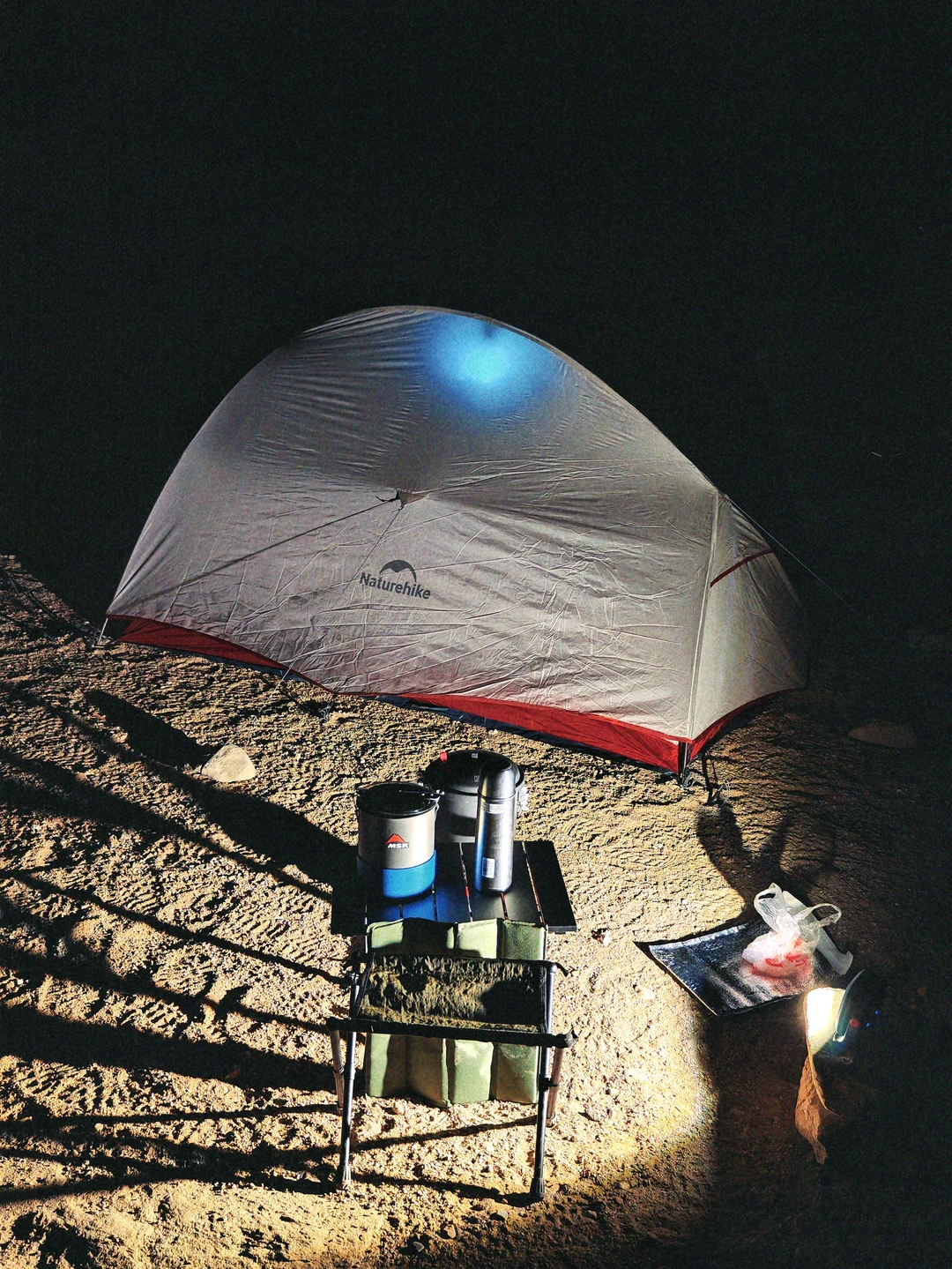 🔺睡前检查:天黑了风可能变大,睡前拿头灯照一遍所有石头,松了的重新绑。