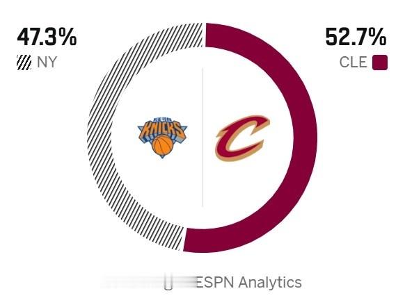 ESPN预测比赛胜率,骑士52.7%,尼克斯47.3%。