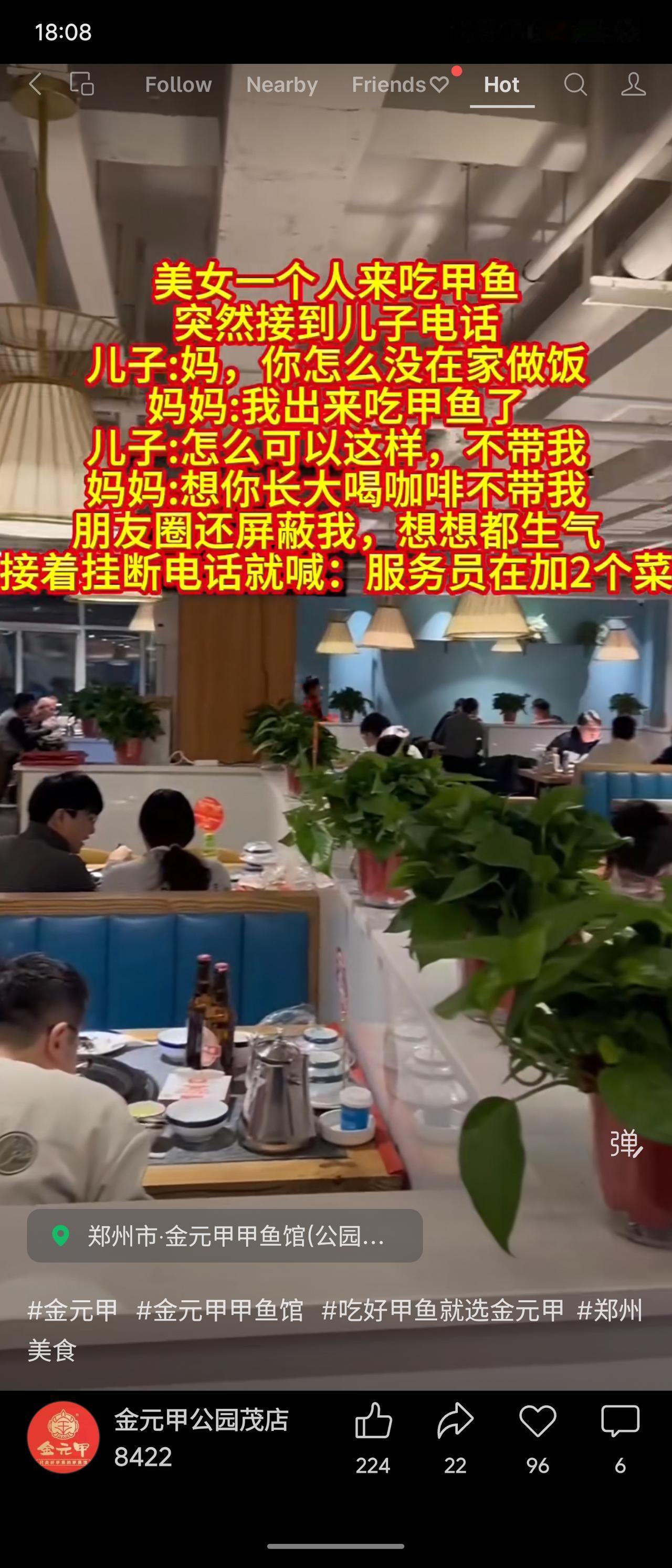 妈妈独自吃甲鱼,儿子来电抱怨没带他,妈妈想起儿子曾屏蔽自己,生气地挂了电话又加两个菜。