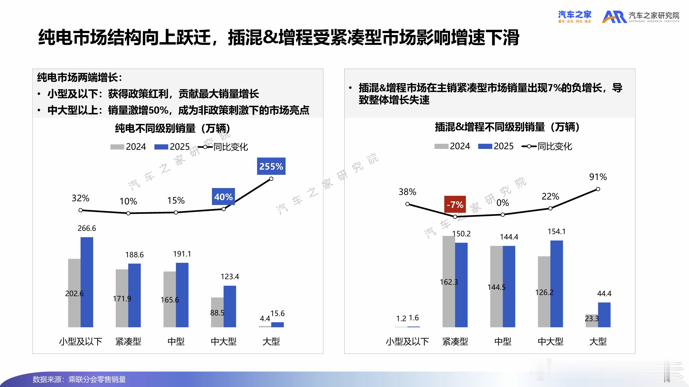 除了竞争高度集中的大型(以 SUV 为主)插混 & 增程市场外,中大型及大型纯电市场的高增速,正在成为新的市场亮点(图2)。