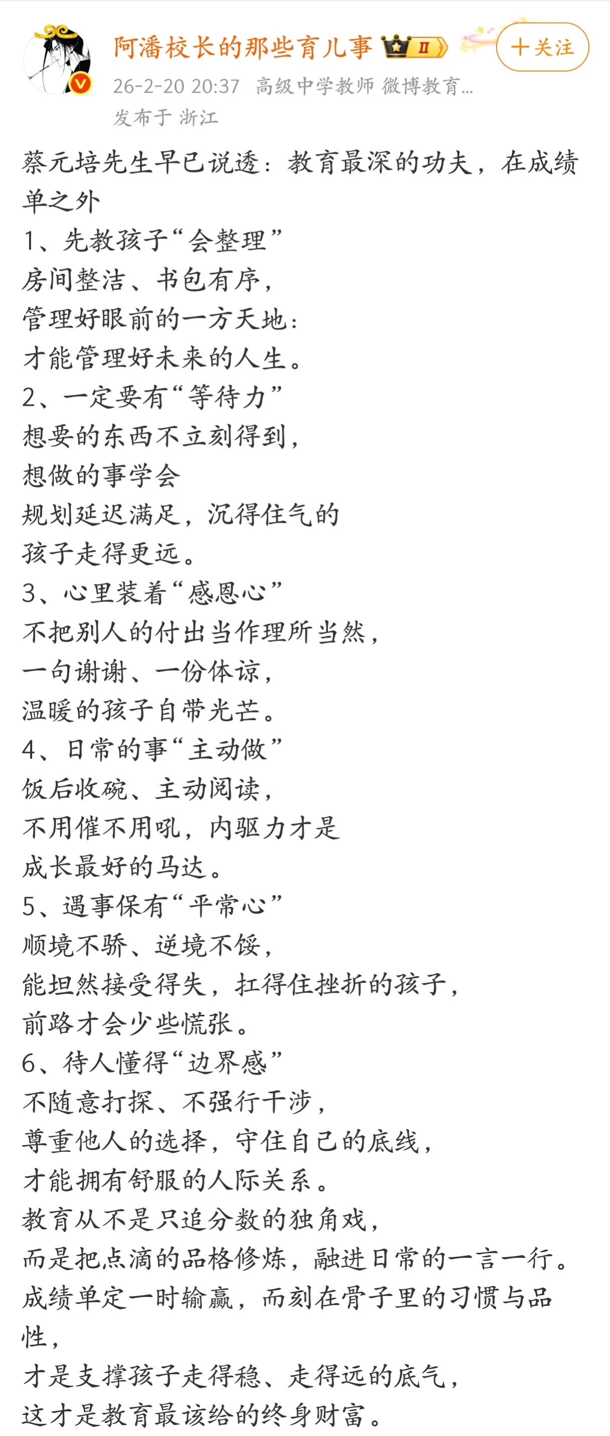 蔡元培先生早已说透:教育最深的功夫,在成绩单之外。