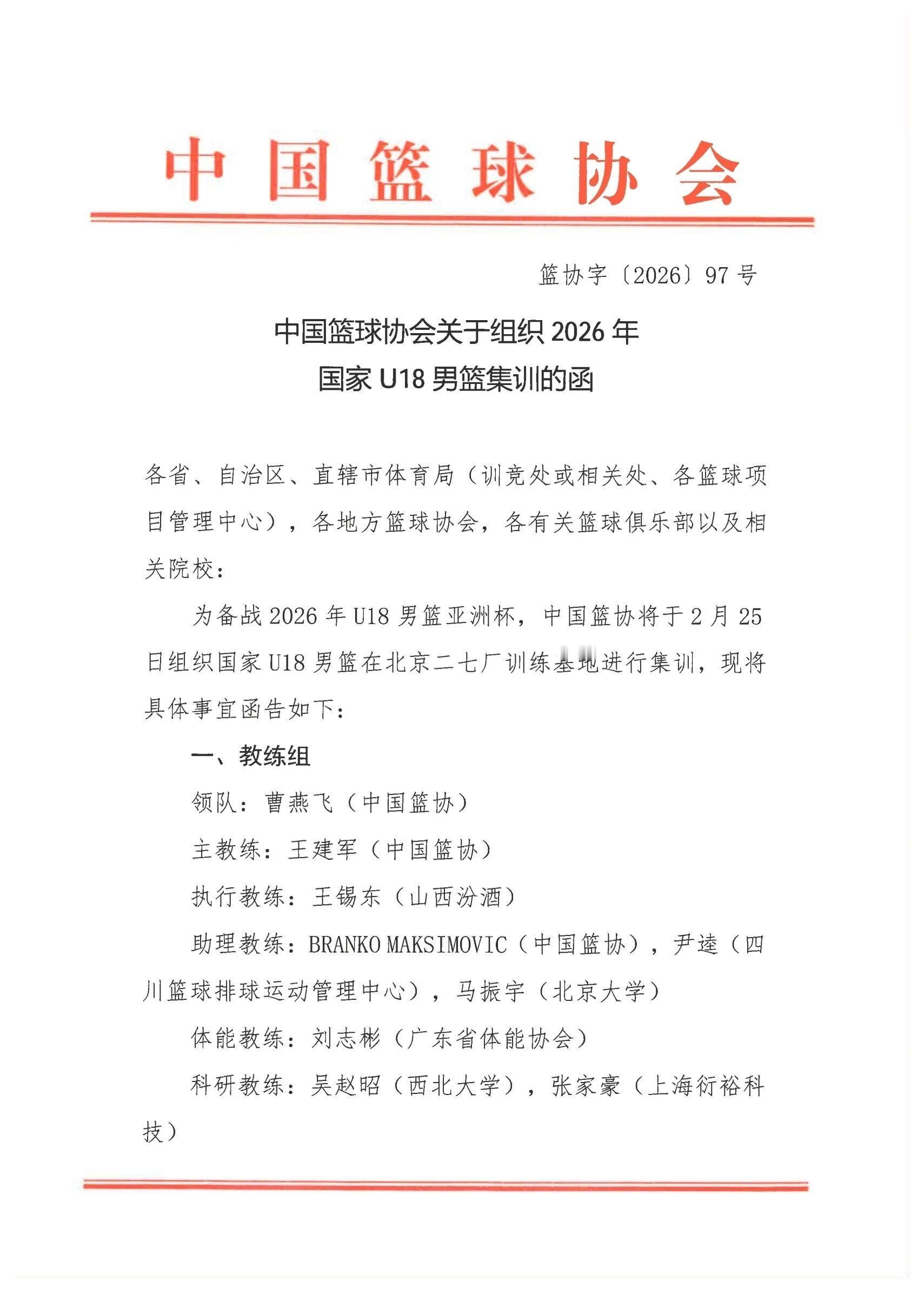 U18国青集训名单~~cba