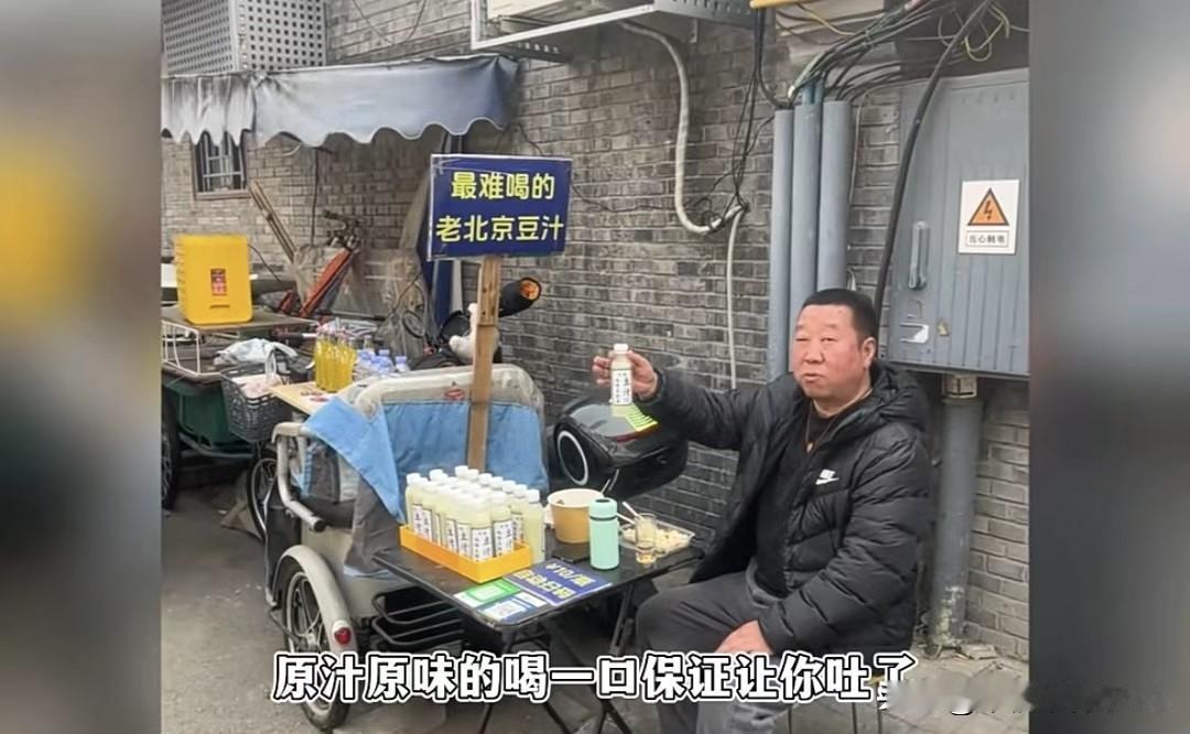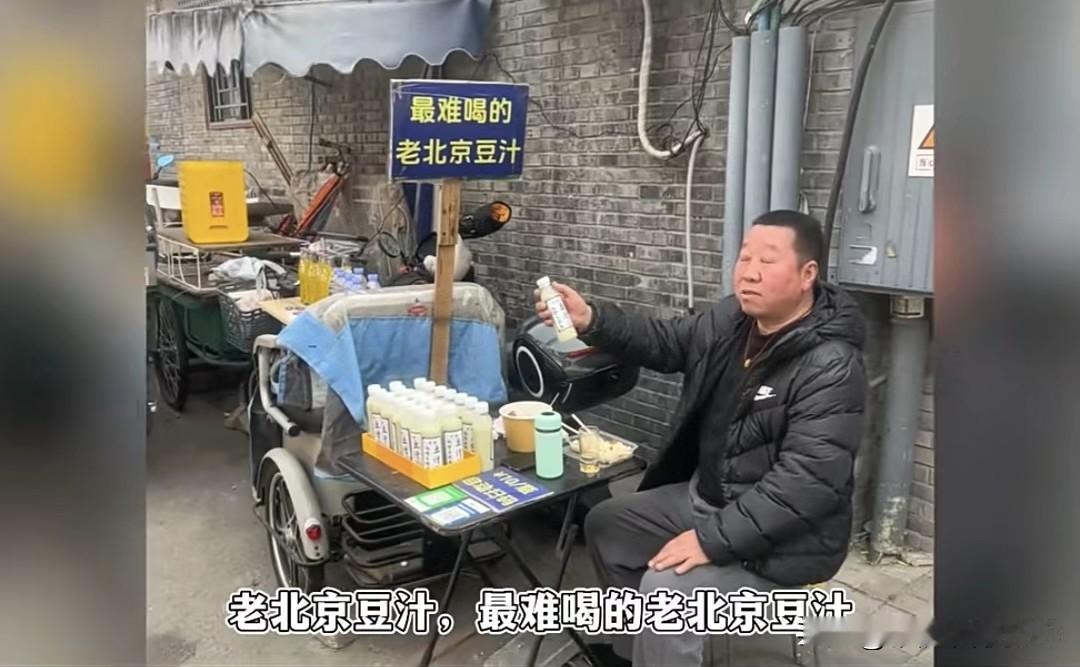 北京大爷卖豆汁反向营销,“最难喝”招牌让游客抢着花钱尝 北京一大爷在黑芝麻胡