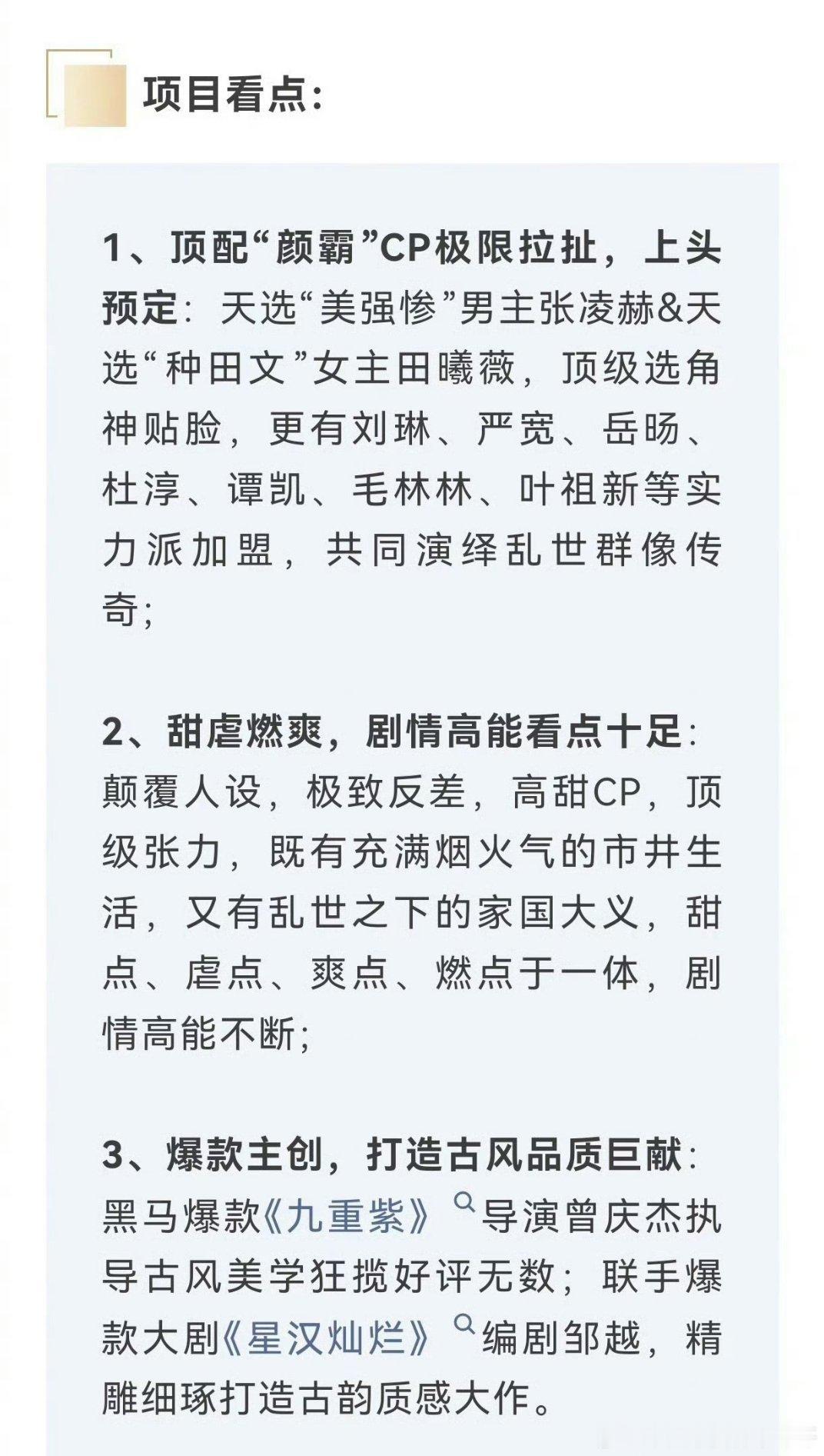 张凌赫、田曦薇(不分先后)逐玉最新招商看点
