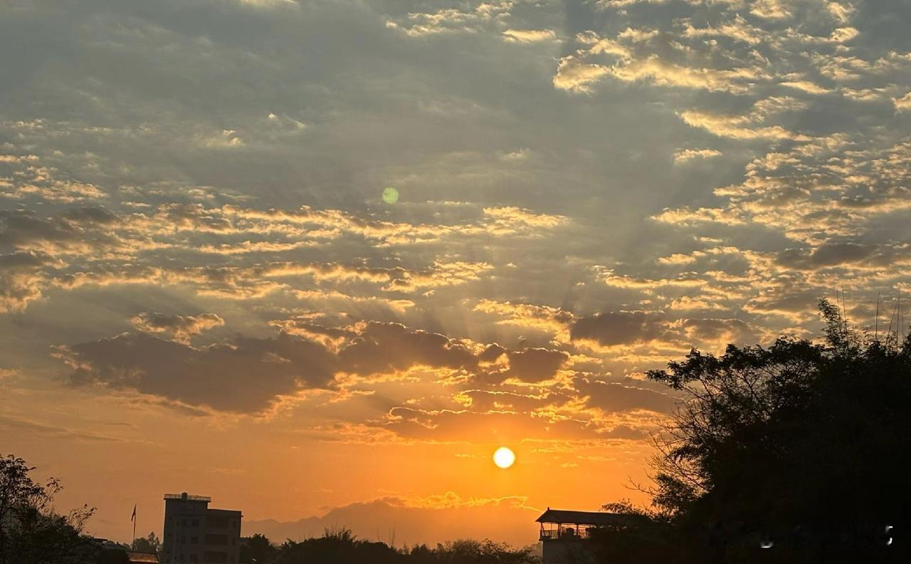 今年冬天的不同落日把云絮染成金橙,光缕从云隙里漏下来,裹着城郭的剪影。晚风浸着暖调,把黄昏的柔意揉进这帧朦胧里,连空气都泛着软和的光。