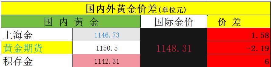 2月24日, 国内贵金属实现开门红。 上海金收盘于1146.73元; 黄金期货主力合约收盘于1150.5元; 民生积存金报价1142.71元。 国际金价报价5175美元/盎司, 简单折算成人民币就是1148.31元。 我们知道国内外黄金 是有一定价差的。 通过下图的对比,可以看出: 国内黄金期货最强, 国际金价次之。