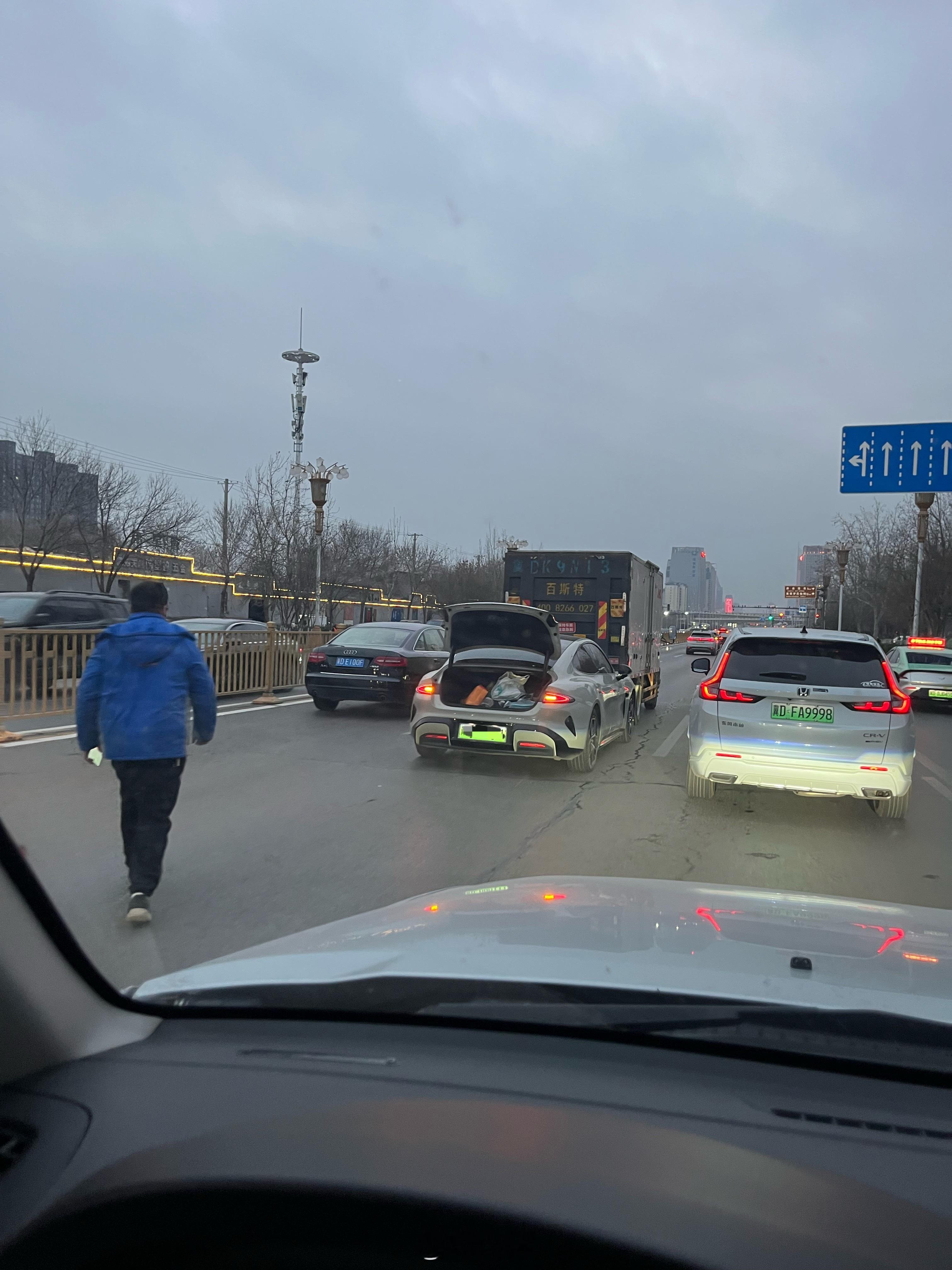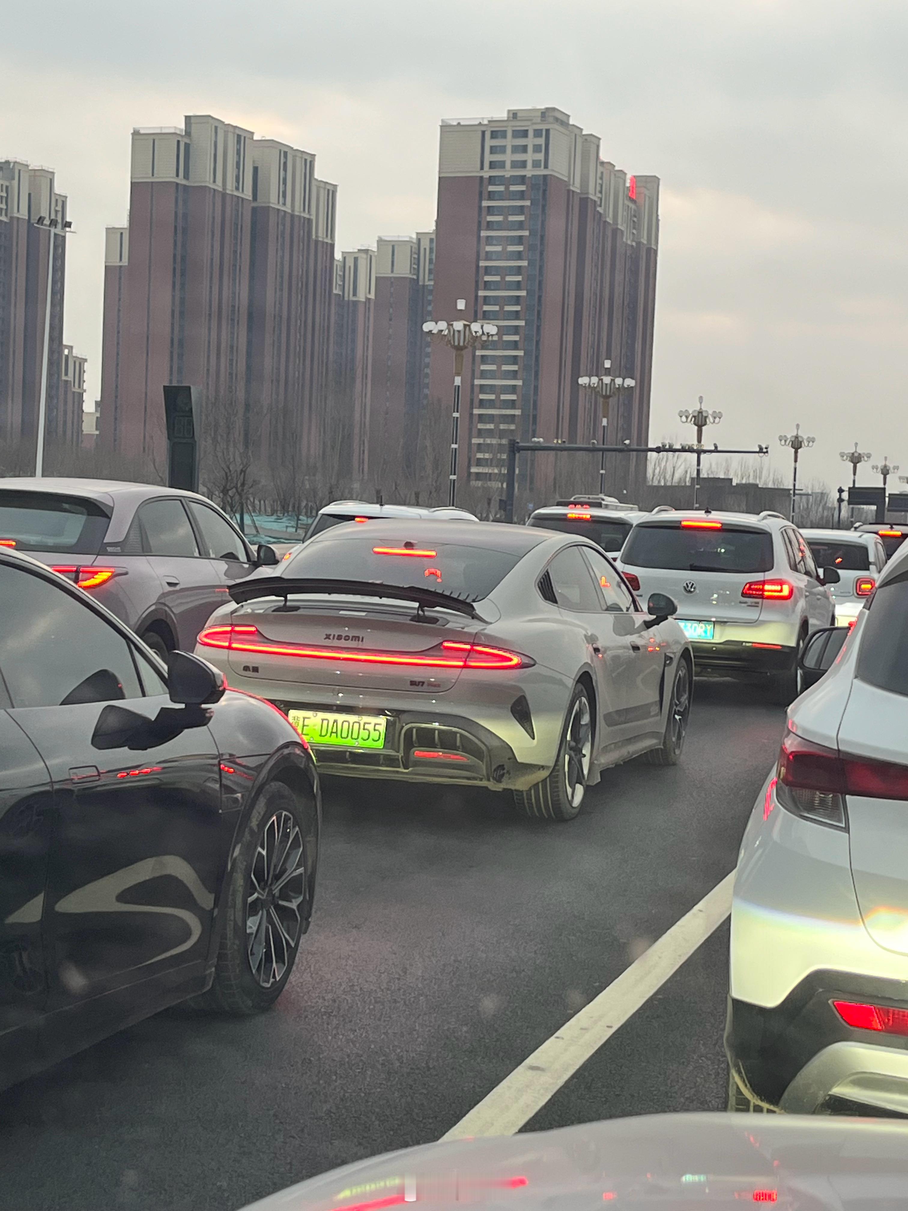 第一个SU7小伙开得贼猛,各种猛加速各种钻,5分钟之后又遇到个同颜色小伙追尾了
