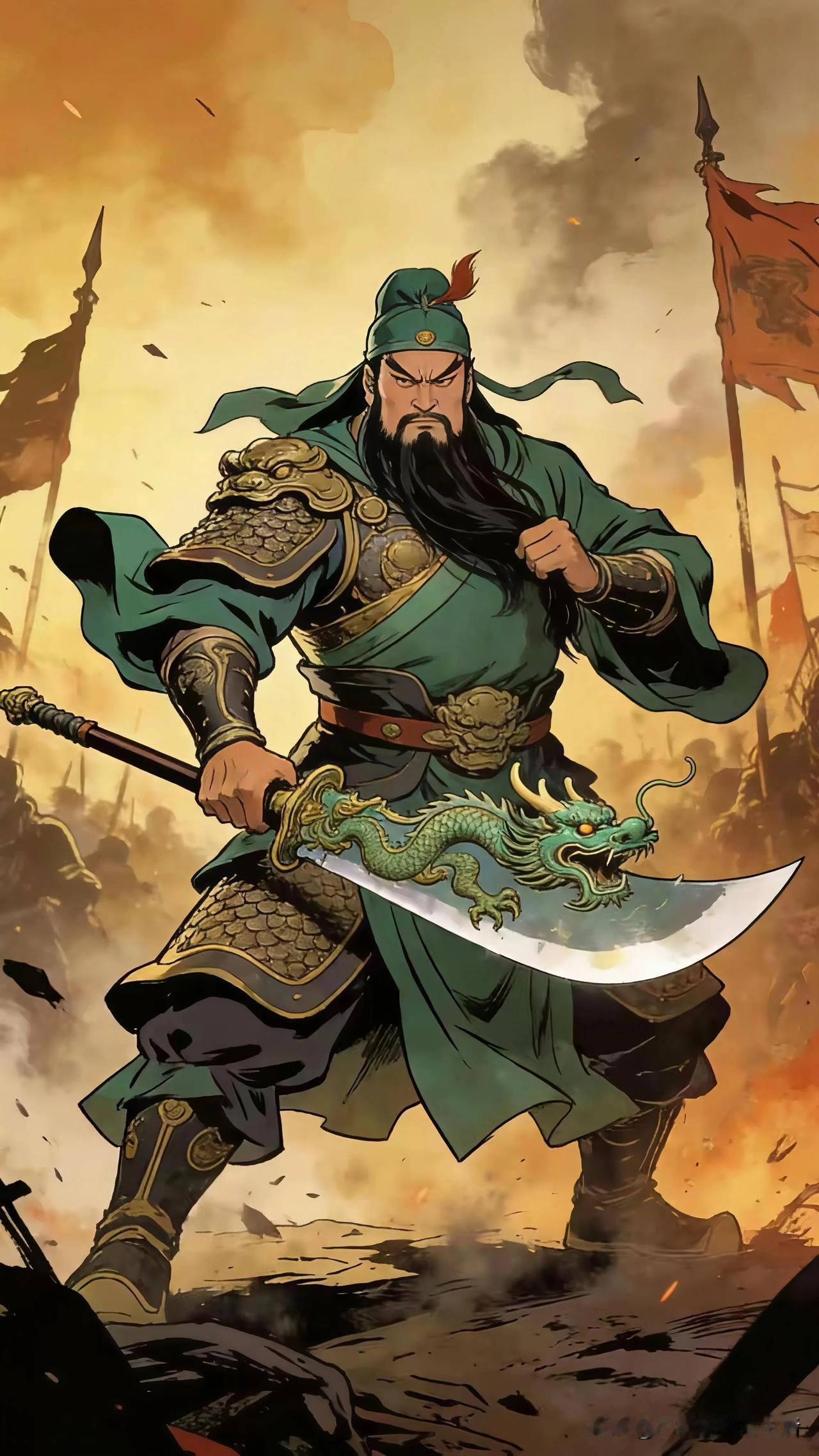 绿袍将军威风凛, 金甲威严显神威。