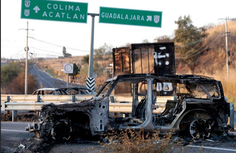 23日,墨西哥国防部长里卡多·特雷比利亚·特雷乔在墨西哥城帕拉西奥国家歌剧院举行的每日新闻发布会上,与总统克劳迪娅·谢恩鲍姆交谈,背景是墨西哥武装部队追踪贩毒集团头目塞万提斯的行动介绍。 突袭行动显然得到了美国情报机构的支持,美国中情局甚至采用了一系列信息收集方法,包括线人、空中监视图像和截获通讯。 由于这起抓捕行动引发了席卷全国的报复性暴力浪潮。就在一天前,军方还展示了一幅卫星照片,显示墨西哥巴亚尔塔港街道上的火灾和路障。 墨西哥当局报告称,20个州共发生多达252起道路封锁事件,多家商铺遭纵火焚烧,安全部队遭遇27次袭击。