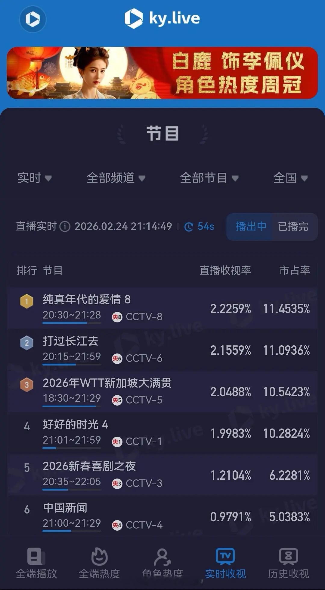 陈飞宇《纯真年代的爱情》今晚酷云新高,平均破2🎉